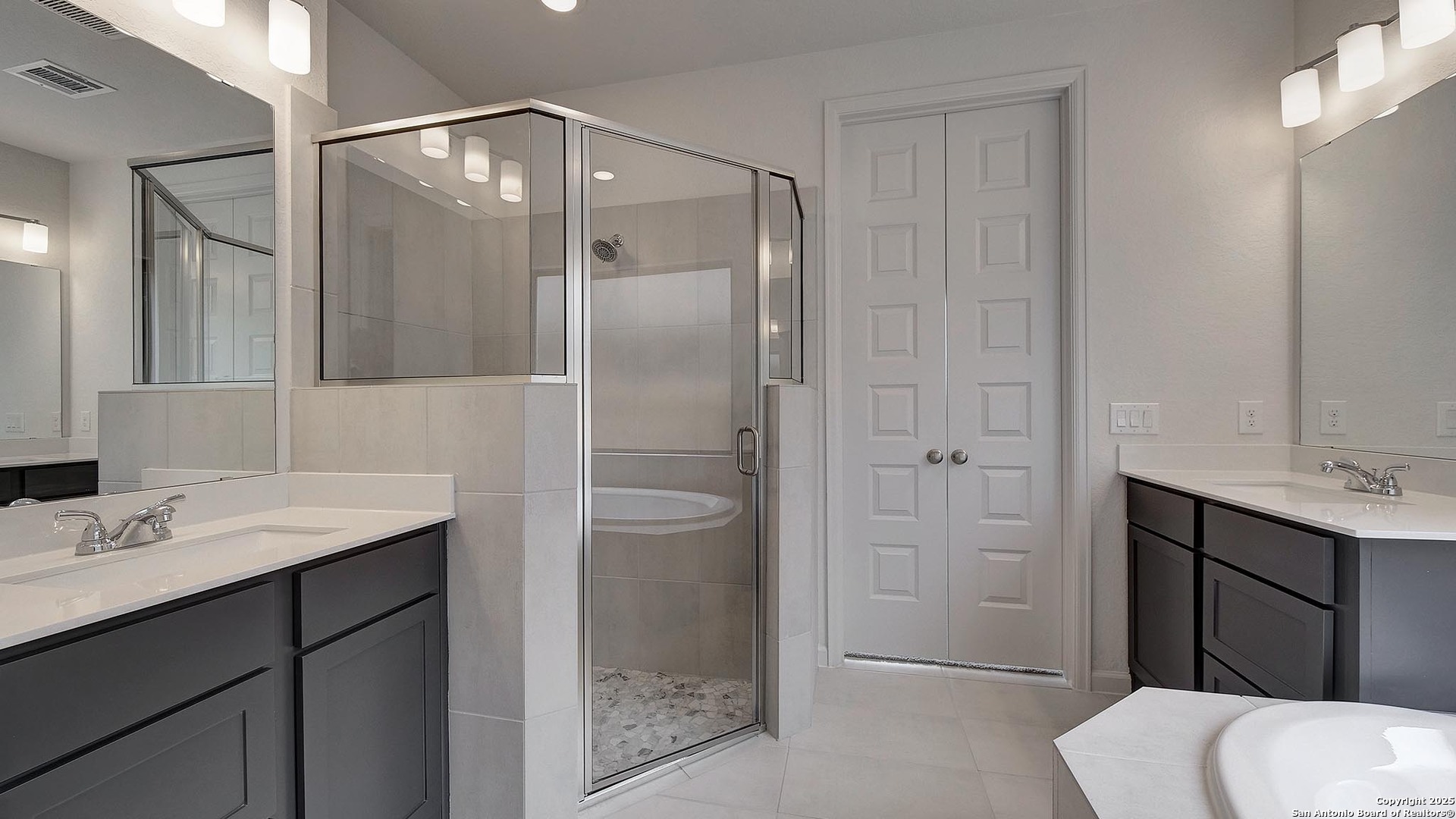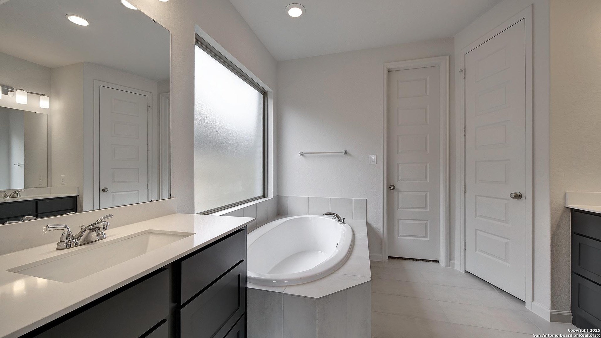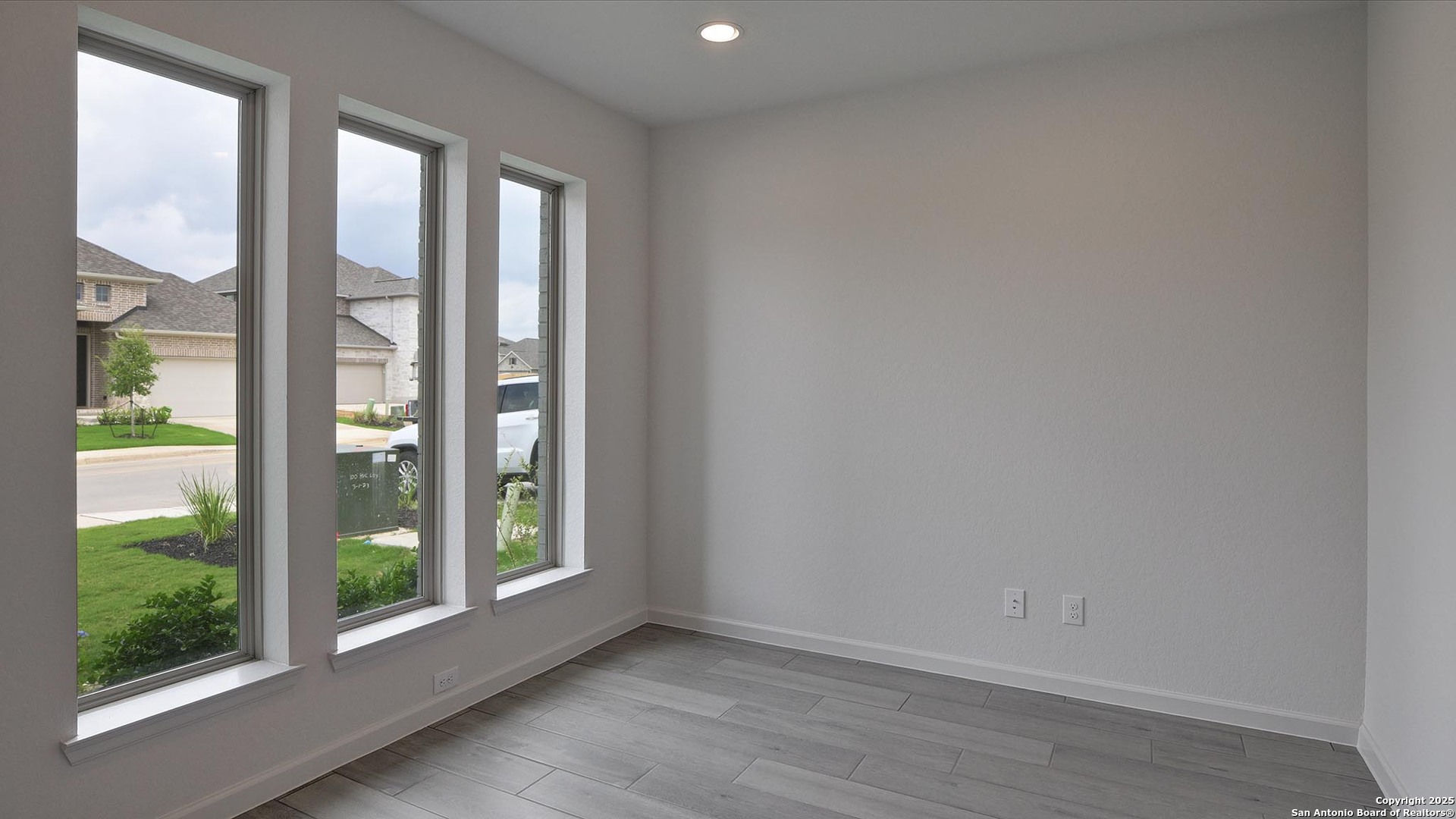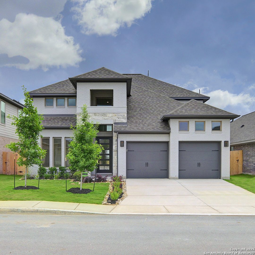 READY FOR MOVE-IN! Home office with French doors and formal dining room set at two-story entry. Kitchen and morning area open to two-story family room with wall of windows. Kitchen features corner walk-in pantry and generous island with built-in seating space. First-floor primary suite. Dual vanity, garden tub, separate glass-enclosed shower and large walk-in closet in primary bath. A second bedroom is downstairs. Upstairs features a game room and two secondary bedrooms. Extended covered backyard patio and 5-zone sprinkler system. Mud room off two-car garage.