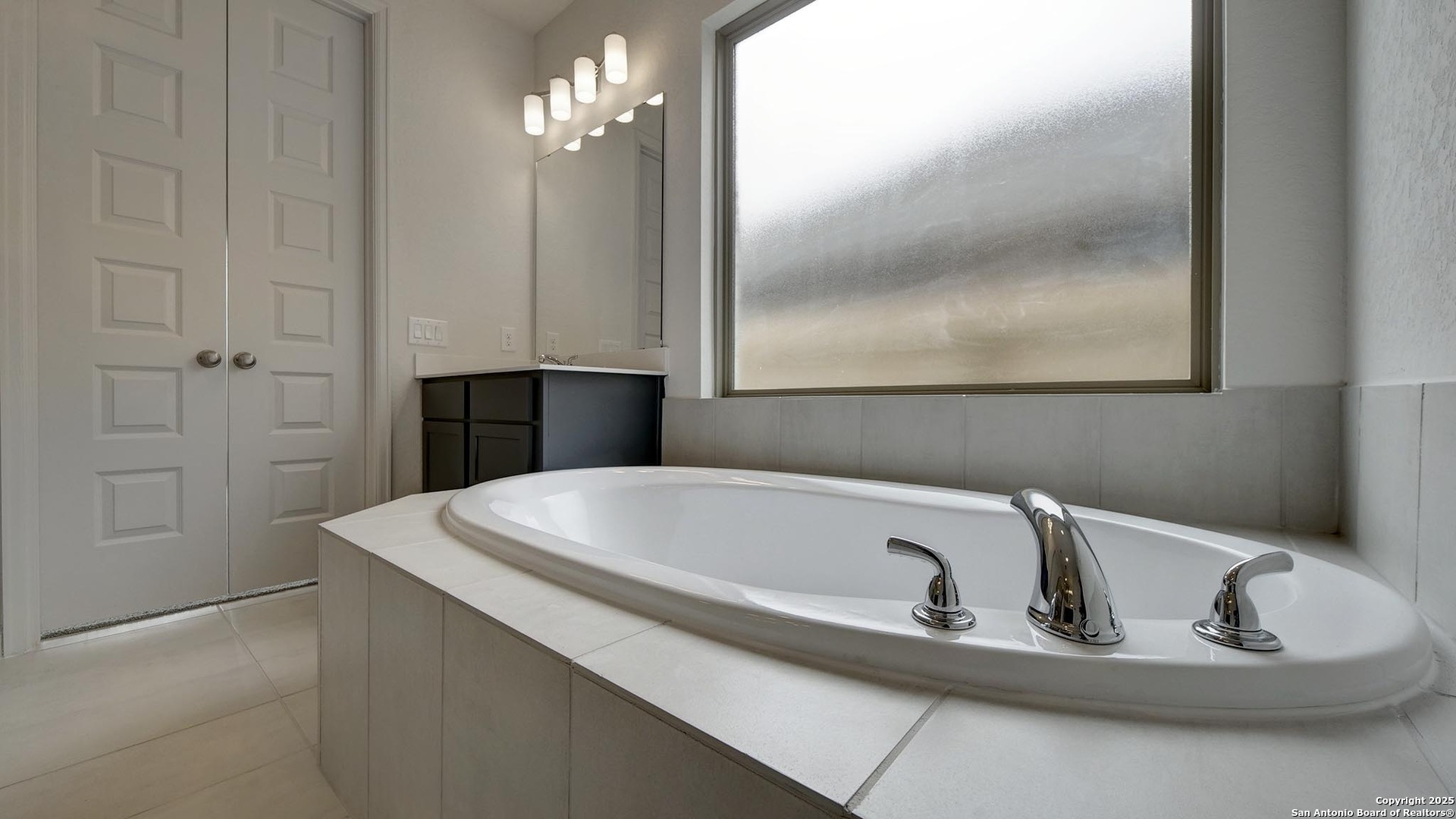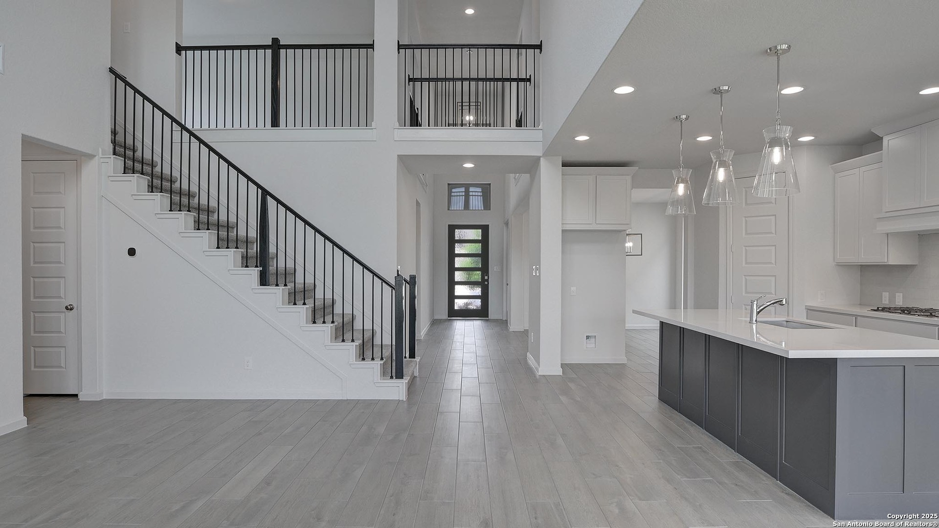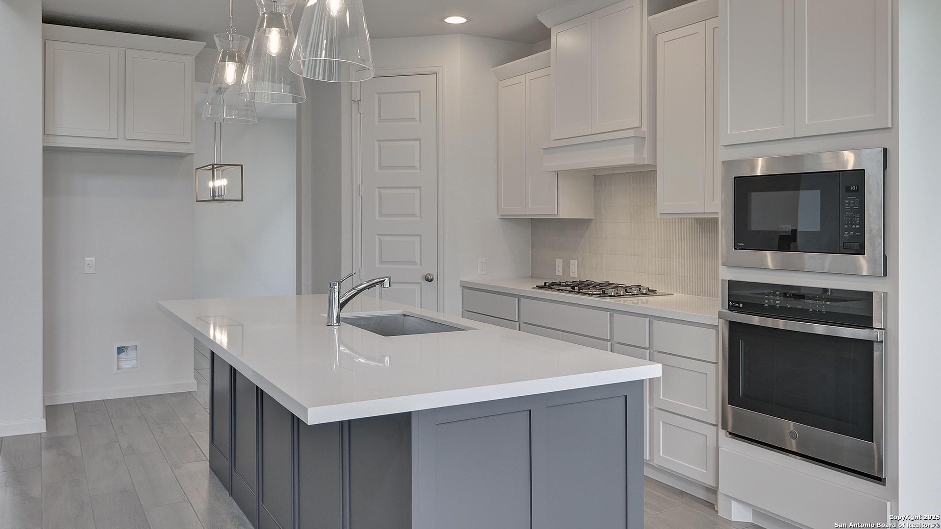 READY FOR MOVE-IN! Home office with French doors and formal dining room set at two-story entry. Kitchen and morning area open to two-story family room with wall of windows. Kitchen features corner walk-in pantry and generous island with built-in seating space. First-floor primary suite. Dual vanity, garden tub, separate glass-enclosed shower and large walk-in closet in primary bath. A second bedroom is downstairs. Upstairs features a game room and two secondary bedrooms. Extended covered backyard patio and 5-zone sprinkler system. Mud room off two-car garage.
