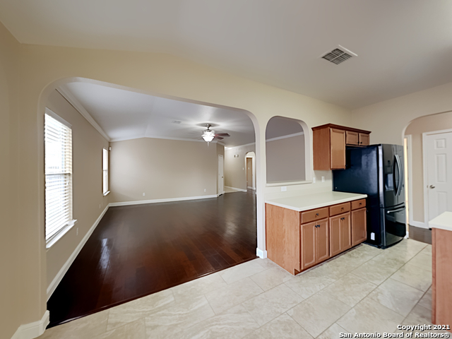 Gorgeous 1 Story Home in Wildhorse! Tile or Wood Plank flooring throughout the House (No Carpet), and ceiling fans in all the rooms. Large living room, Island Kitchen with LOTS of cabinet space and countertops, and the Refrigerator is Included. Outback features a wonderfully landscaped yard and sprinkler system. Covered Patio too! 2 Car garage with opener. The neighborhood features 2 Pools, a playground and a soccer field. This is a No Pet Property. Bluefax Property Management is now offering a