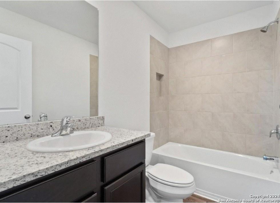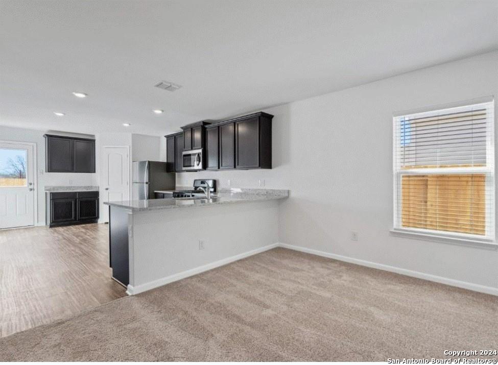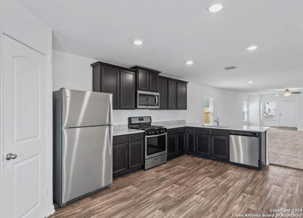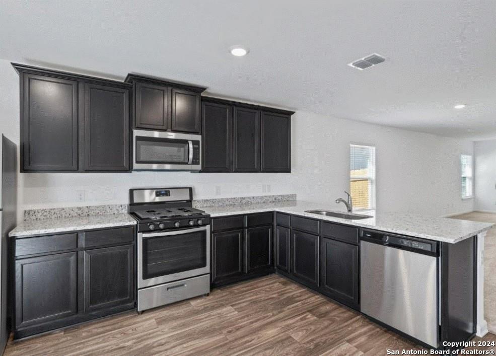 3 bedroom 2 bath Beautiful home in Morningside Trails neighborhood, New Braunfels. Granite counters, vinyl wood floors, dark wood cabinets, and an open floor plan. Fully equipped kitchen with stainless steel appliances. Includes refrigerator, microwave, oven/stove, dishwasher, and disposal. Spacious living area!! 2 car garage. Fenced, big private backyard. Washer/dryer connection located in laundry room inside. Community has a playground, splash pad, walking trails, and picnic area.