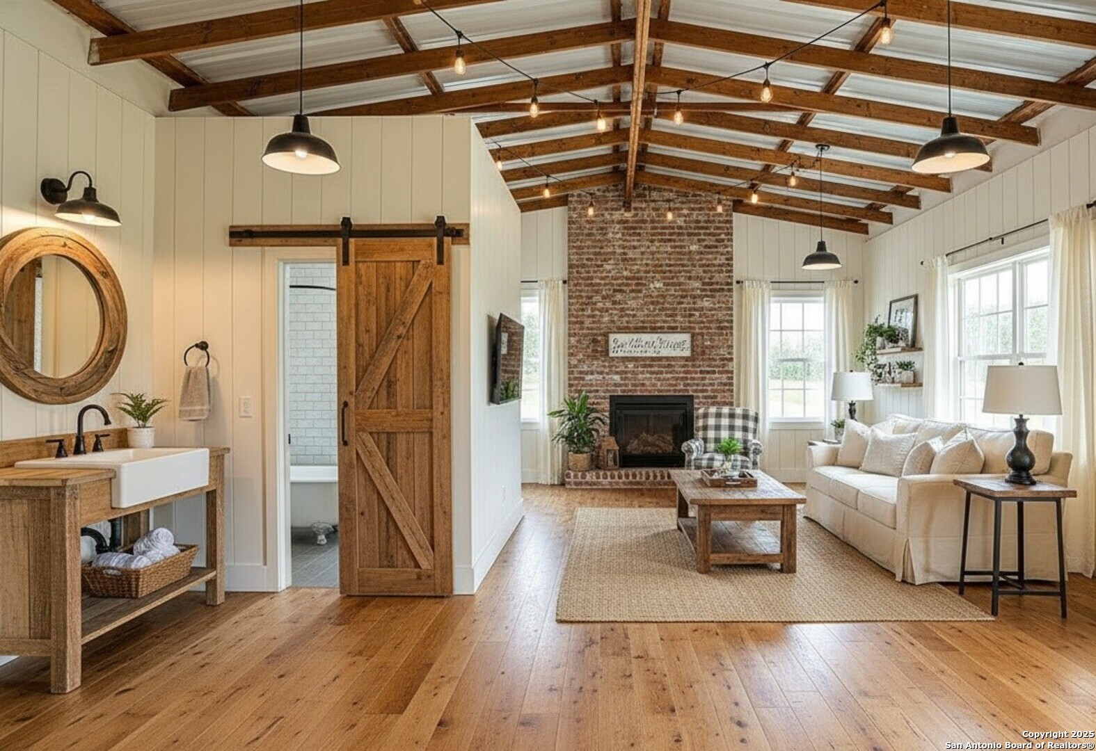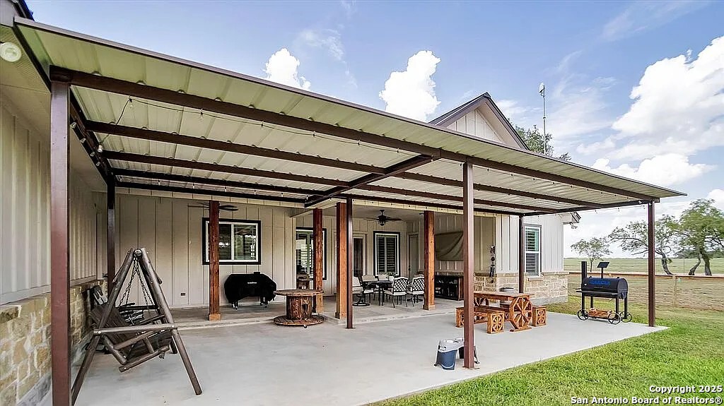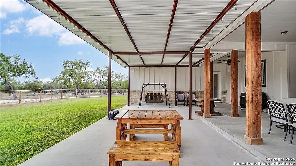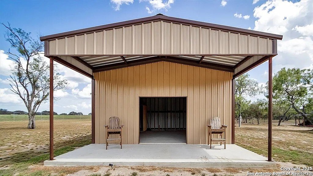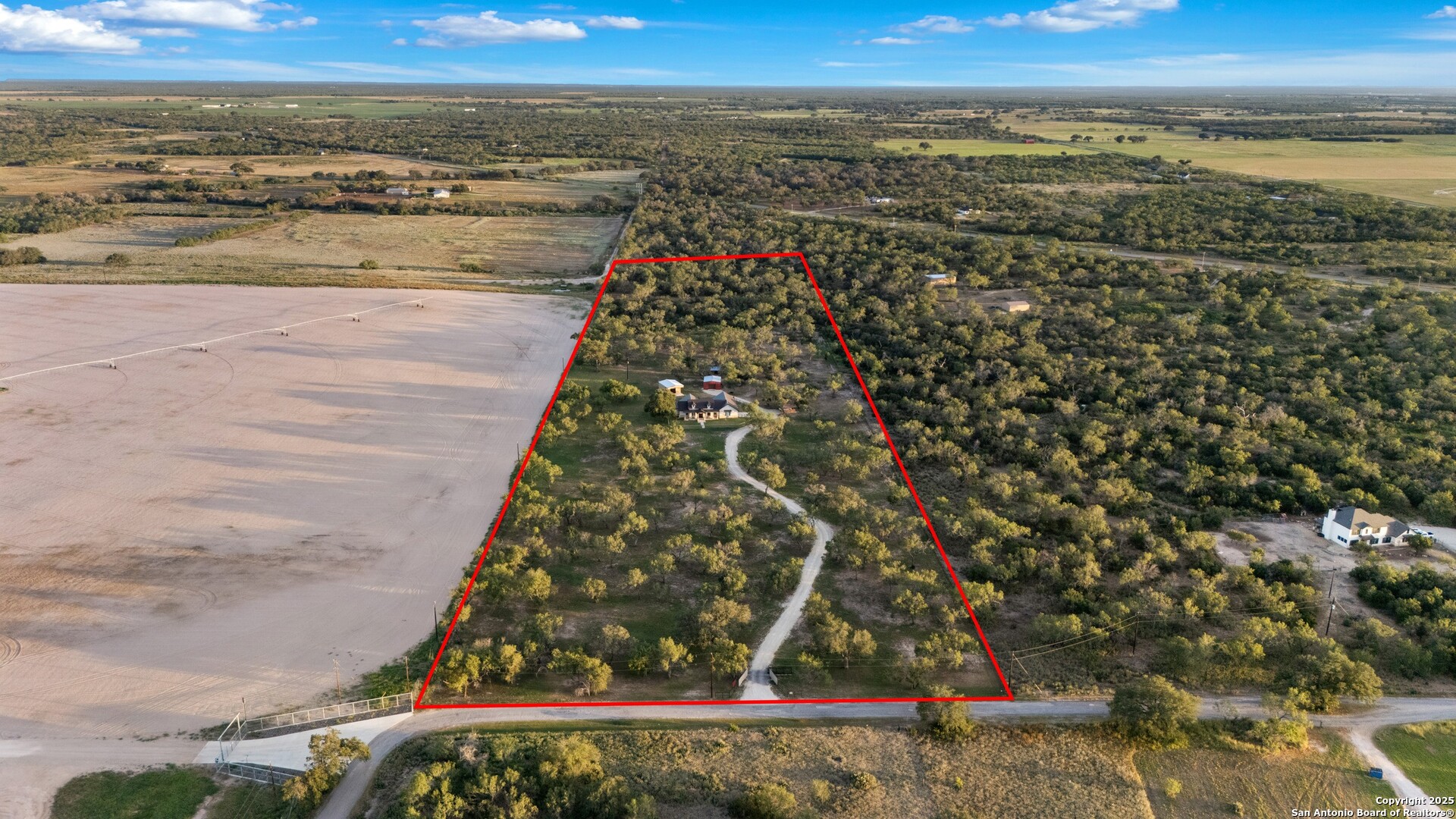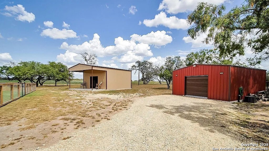 Welcome to 976 County Road 7718- a breathtaking 2023 custom-built luxury home nestled on over 11 acres of serene Texas countryside. This one-of-a-kind residence offers unmatched privacy, elegance, and charm. Boasting a secure electric gated entrance, full perimeter game fencing, sweeping panoramic views, and majestic mature oaks, this unrestricted property offers both security and natural beauty in a truly exceptional setting designed for elevated living. Step inside to soaring ceilings, an open-concept layout, and premium upgrades at every turn-including custom cabinetry, quartz countertops, elegant lighting, and a chef-inspired gourmet kitchen designed for both beauty and function. The spacious primary suite offers a spa-like retreat complete with a luxurious walk-in shower and stunning dual quartz vanities. Generously sized secondary bedrooms each offer spacious walk-in closets and abundant natural light, providing comfort and style for family or guests. Unwind on the expansive covered patio overlooking the picturesque landscape-an ideal setting for relaxing or entertaining. Enhancing the property's versatility is a fully finished detached workshop, along with a secondary metal structure-already framed and awaiting your custom vision, whether as a guest house, creative studio, or luxury recreational space. This expansive 11-acre property offers endless possibilities-perfectly suited for equestrian living, personalized enhancements, or simply enjoying the tranquility of the Texas countryside. Conveniently situated 30 minutes from San Antonio and only 5 miles from the heart of Devine, providing easy access to both city amenities and small-town charm. Schedule your private tour today!