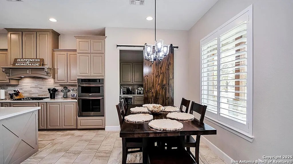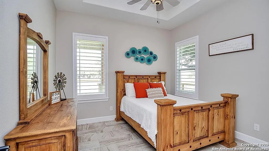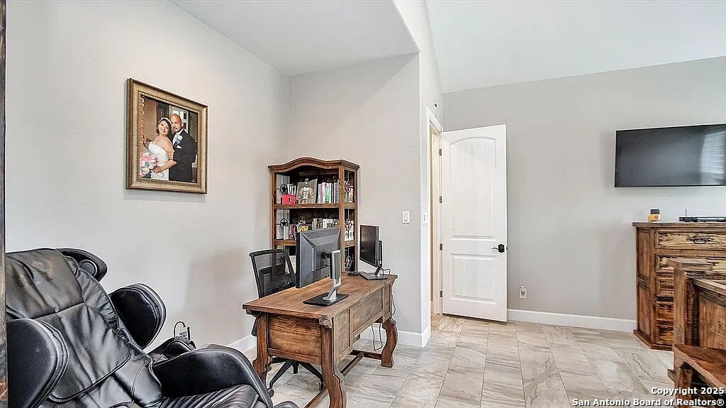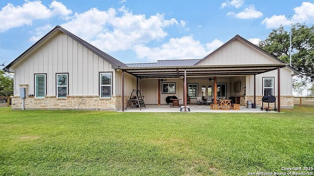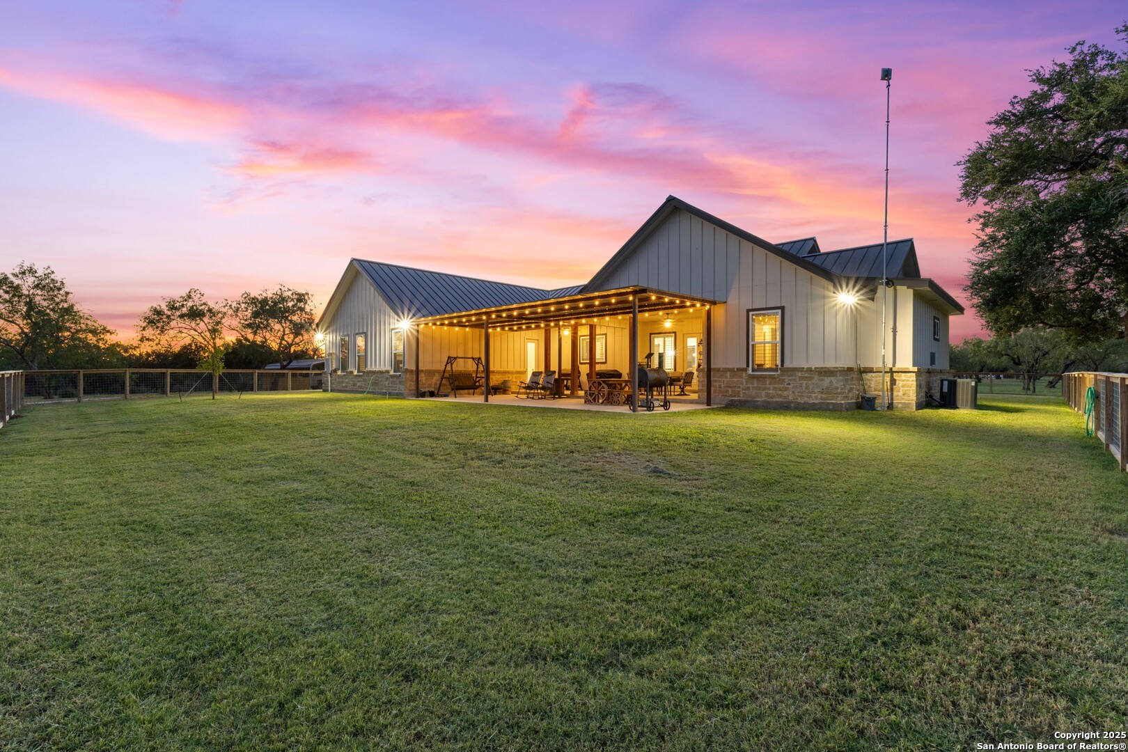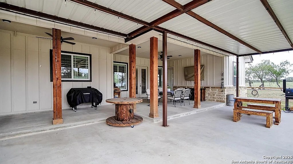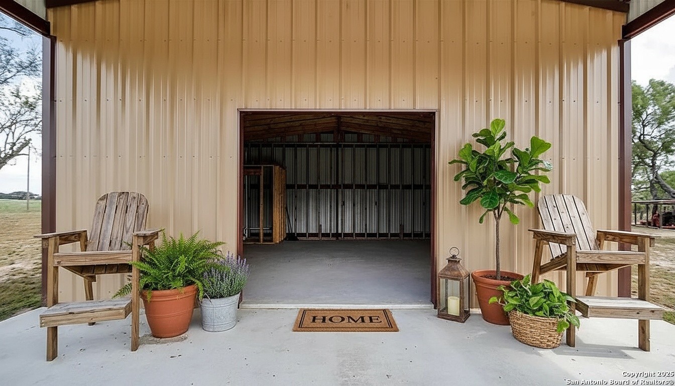 Welcome to 976 County Road 7718- a breathtaking 2023 custom-built luxury home nestled on over 11 acres of serene Texas countryside. This one-of-a-kind residence offers unmatched privacy, elegance, and charm. Boasting a secure electric gated entrance, full perimeter game fencing, sweeping panoramic views, and majestic mature oaks, this unrestricted property offers both security and natural beauty in a truly exceptional setting designed for elevated living. Step inside to soaring ceilings, an open-concept layout, and premium upgrades at every turn-including custom cabinetry, quartz countertops, elegant lighting, and a chef-inspired gourmet kitchen designed for both beauty and function. The spacious primary suite offers a spa-like retreat complete with a luxurious walk-in shower and stunning dual quartz vanities. Generously sized secondary bedrooms each offer spacious walk-in closets and abundant natural light, providing comfort and style for family or guests. Unwind on the expansive covered patio overlooking the picturesque landscape-an ideal setting for relaxing or entertaining. Enhancing the property's versatility is a fully finished detached workshop, along with a secondary metal structure-already framed and awaiting your custom vision, whether as a guest house, creative studio, or luxury recreational space. This expansive 11-acre property offers endless possibilities-perfectly suited for equestrian living, personalized enhancements, or simply enjoying the tranquility of the Texas countryside. Conveniently situated 30 minutes from San Antonio and only 5 miles from the heart of Devine, providing easy access to both city amenities and small-town charm. Schedule your private tour today!
