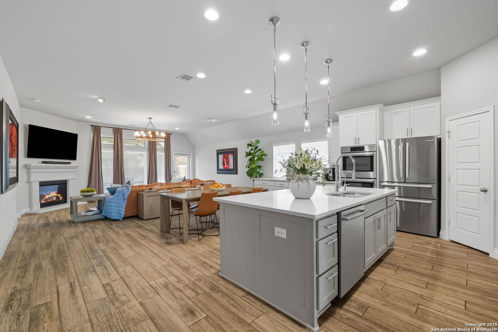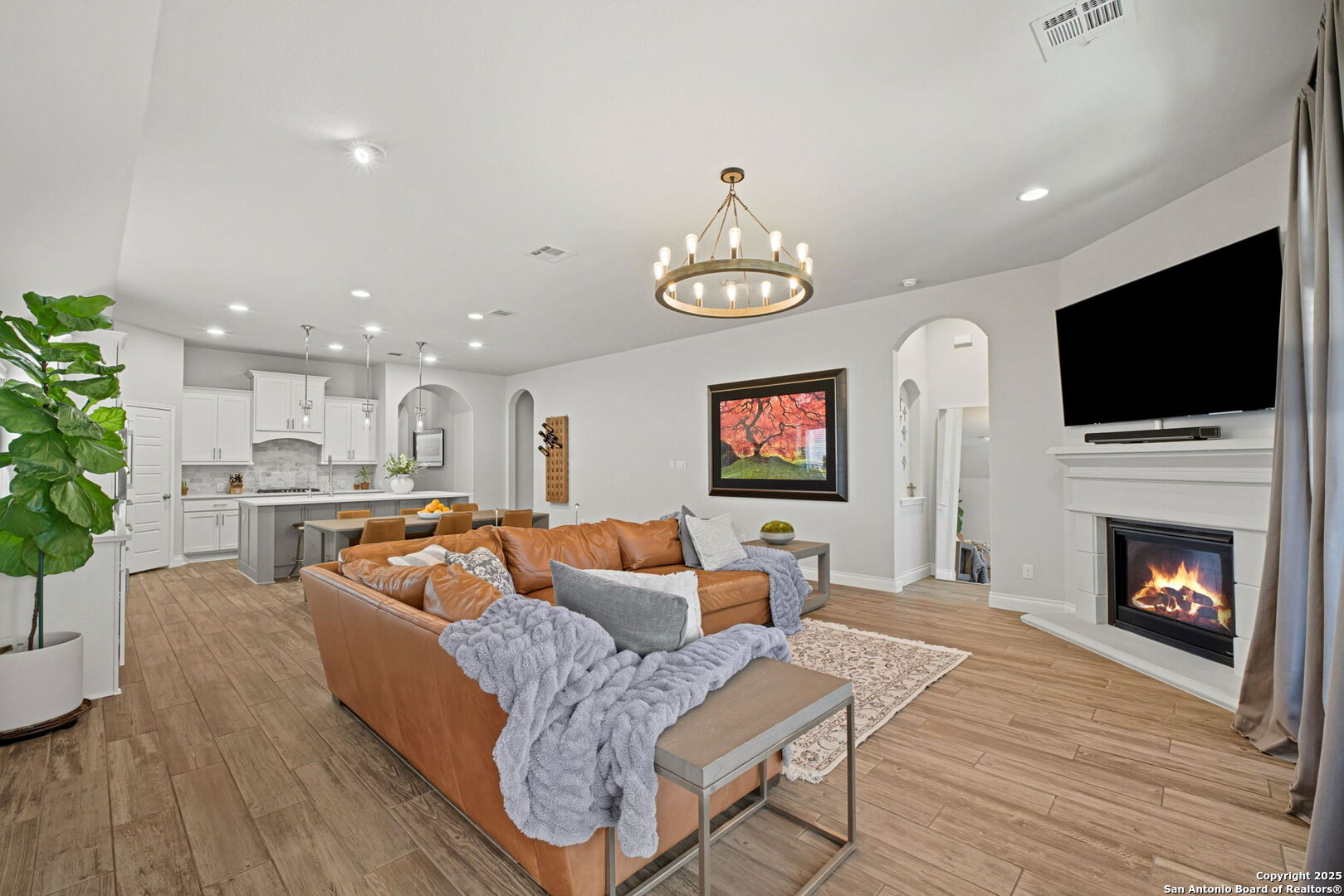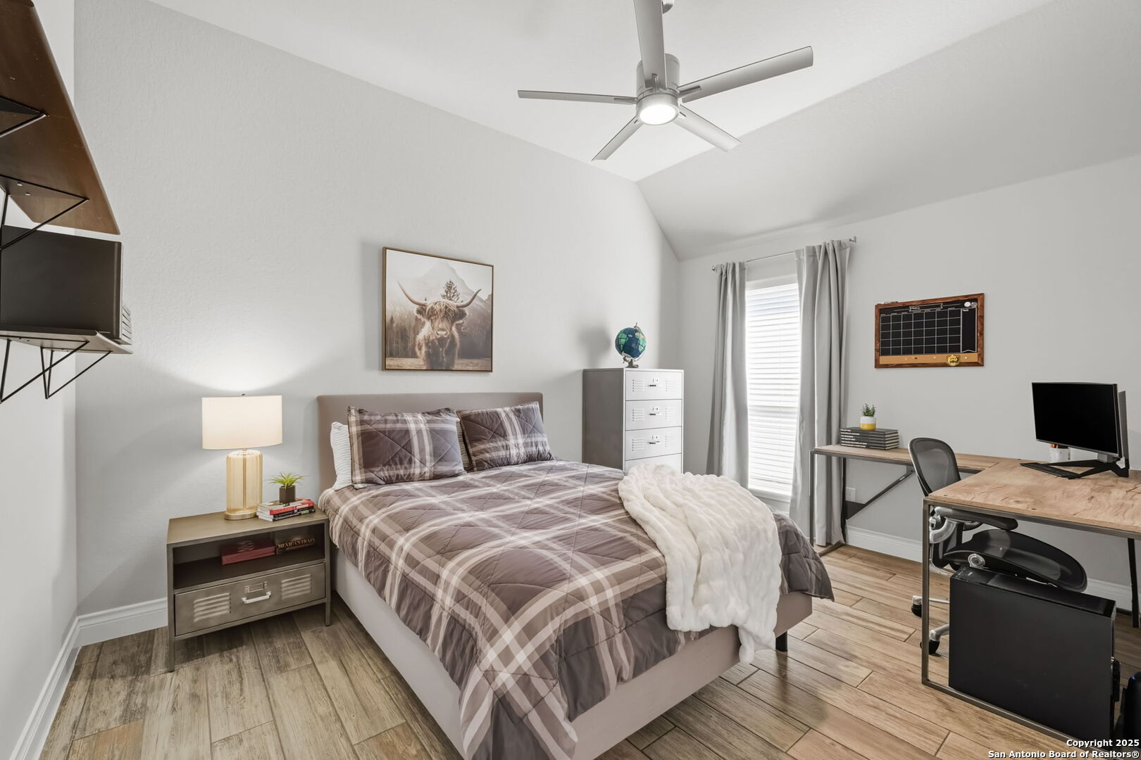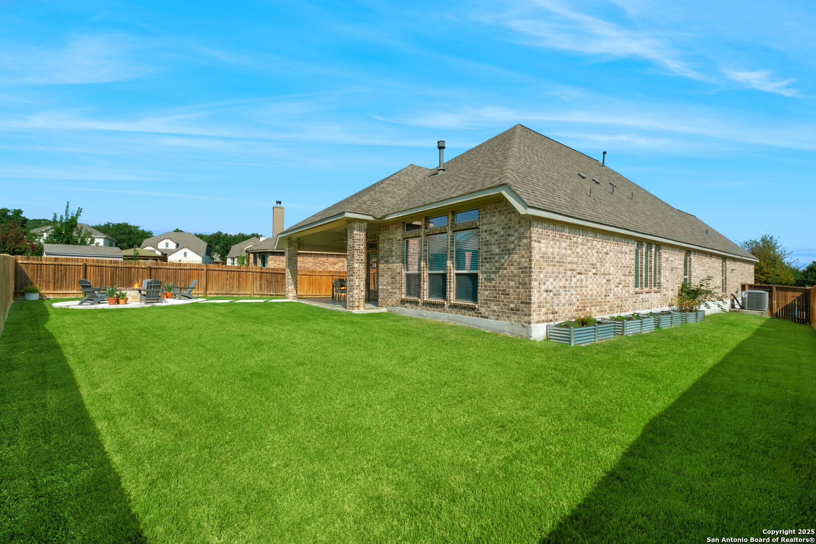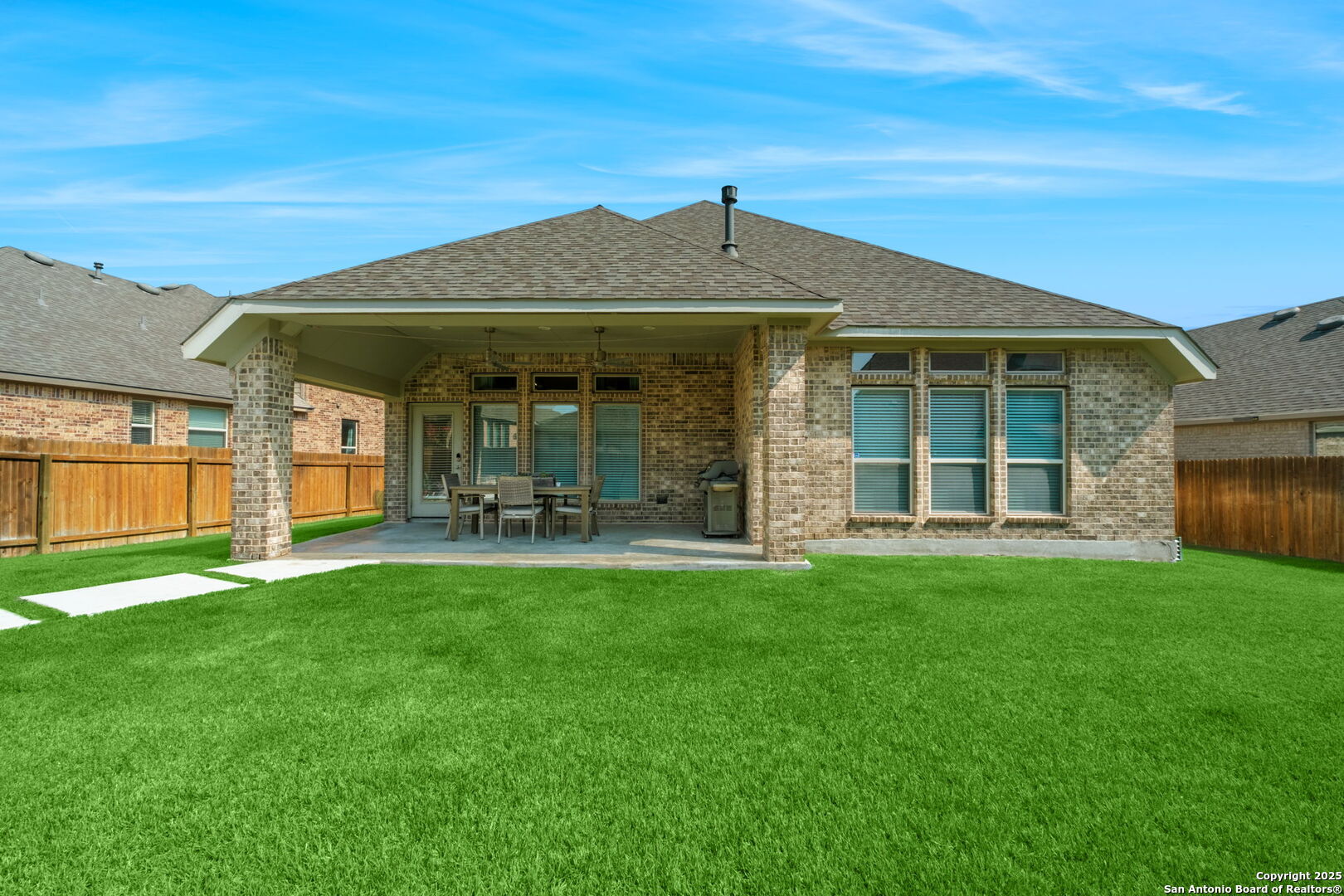 ASSUMABLE VA LOAN AVAILABLE AT 2.25 PERCENT INTEREST RATE WITH APPROVED BUYER Welcome to this thoughtfully designed single-story home located inside the gated community of Balcones Creek in Boerne. The open-concept layout features soaring ceilings, upgraded floors and lighting, and a flexible dedicated office (or gym-see pictures). At the heart of the home, the expansive living area flows seamlessly into the gourmet kitchen and dining spaces-perfect for entertaining or everyday living. The spacious primary suite includes a spa-like bath and dual walk-in closets and one of the secondary bedrooms incudes its own private en-suite bath making it ideal for guests or family members. Step outside to an inviting covered patio with an elevated fire pit, while the side yard offers raised garden beds providing a retreat with room to grow. Balcones Creek residents enjoy resort-style amenities including a sparkling pool, clubhouse, walking trails, and parks. The neighborhood blends the peaceful charm of the Hill Country with convenient access to Boerne ISD schools, boutique shopping and dining in Downtown Boerne, the brand-new HEB, and a quick commute to San Antonio via I-10. Included: Tesla Gen 3 Wall Charger delivering up to 44 miles of range per hour at 11.5 kW-50 percent faster than a standard mobile connector.