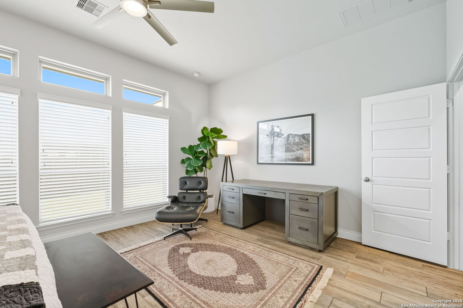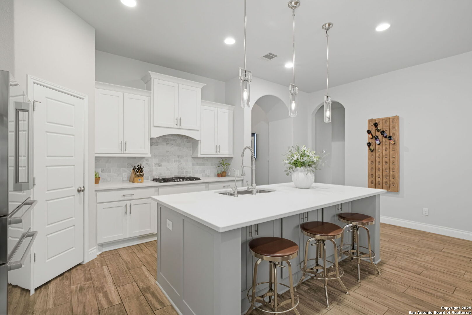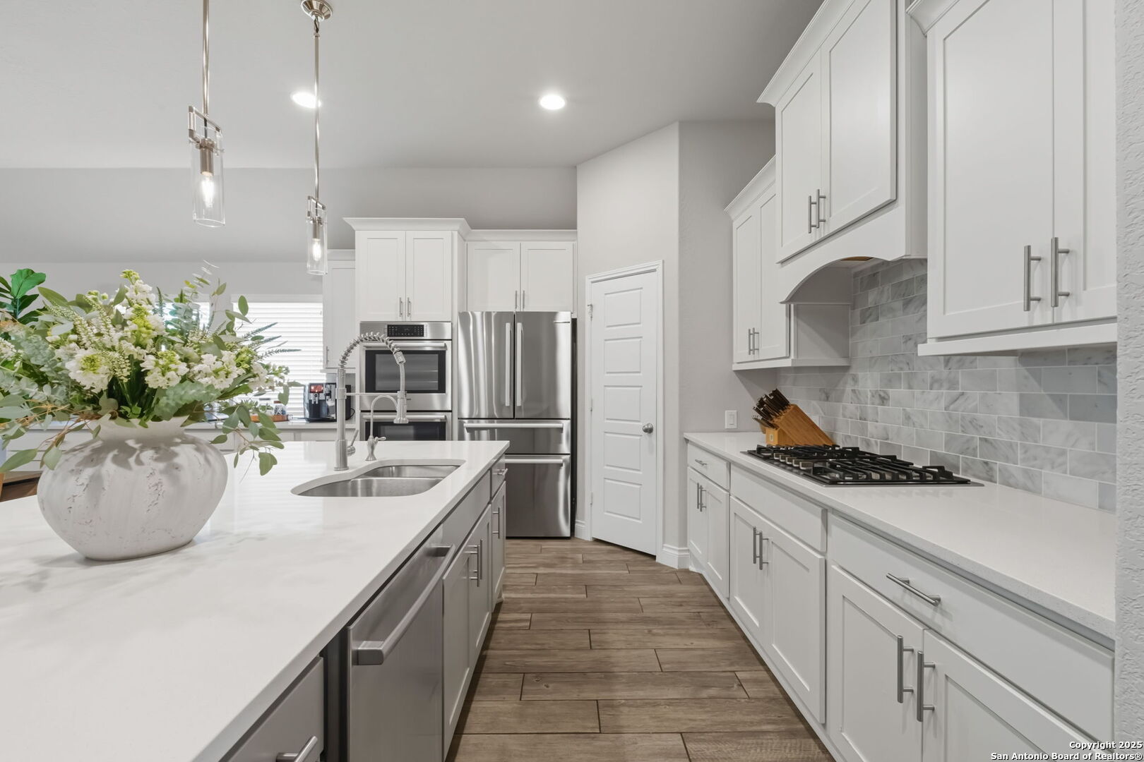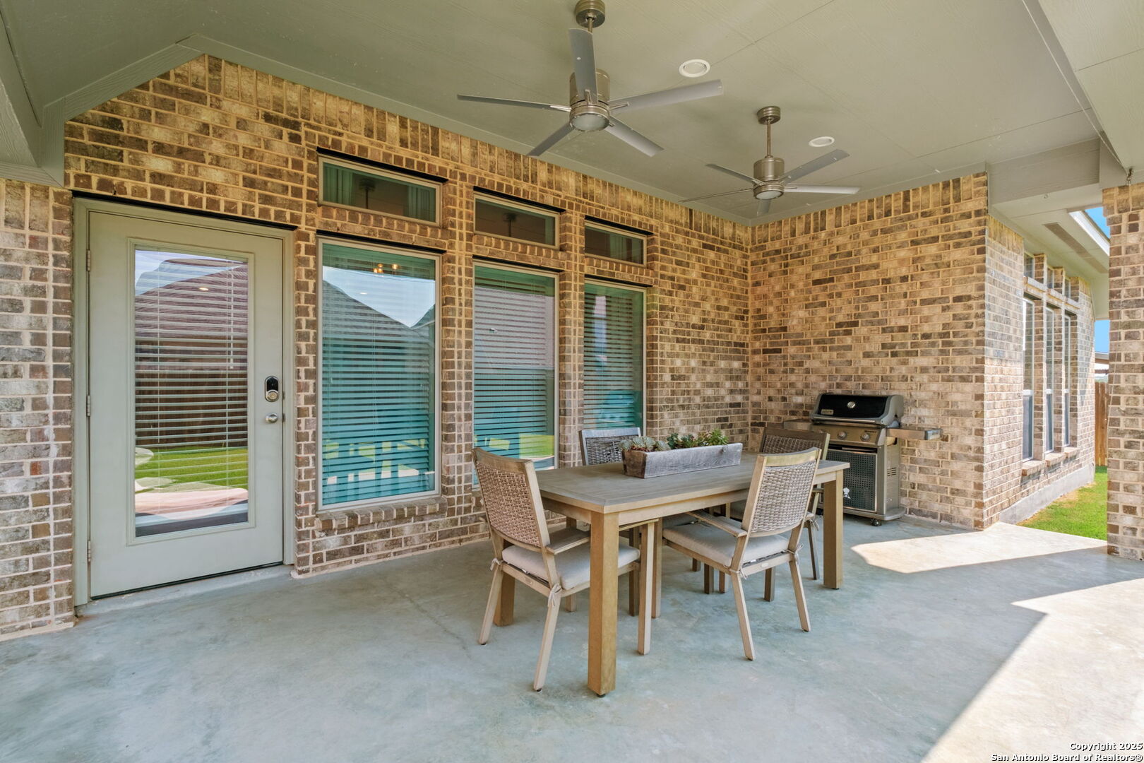 ASSUMABLE VA LOAN AVAILABLE AT 2.25 PERCENT INTEREST RATE WITH APPROVED BUYER Welcome to this thoughtfully designed single-story home located inside the gated community of Balcones Creek in Boerne. The open-concept layout features soaring ceilings, upgraded floors and lighting, and a flexible dedicated office (or gym-see pictures). At the heart of the home, the expansive living area flows seamlessly into the gourmet kitchen and dining spaces-perfect for entertaining or everyday living. The spacious primary suite includes a spa-like bath and dual walk-in closets and one of the secondary bedrooms incudes its own private en-suite bath making it ideal for guests or family members. Step outside to an inviting covered patio with an elevated fire pit, while the side yard offers raised garden beds providing a retreat with room to grow. Balcones Creek residents enjoy resort-style amenities including a sparkling pool, clubhouse, walking trails, and parks. The neighborhood blends the peaceful charm of the Hill Country with convenient access to Boerne ISD schools, boutique shopping and dining in Downtown Boerne, the brand-new HEB, and a quick commute to San Antonio via I-10. Included: Tesla Gen 3 Wall Charger delivering up to 44 miles of range per hour at 11.5 kW-50 percent faster than a standard mobile connector.