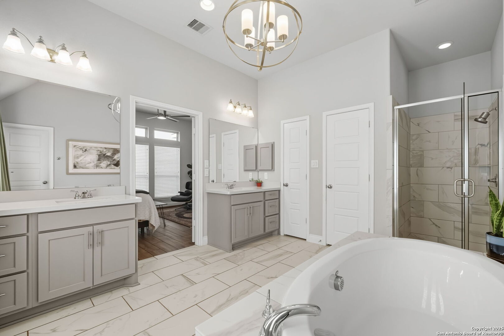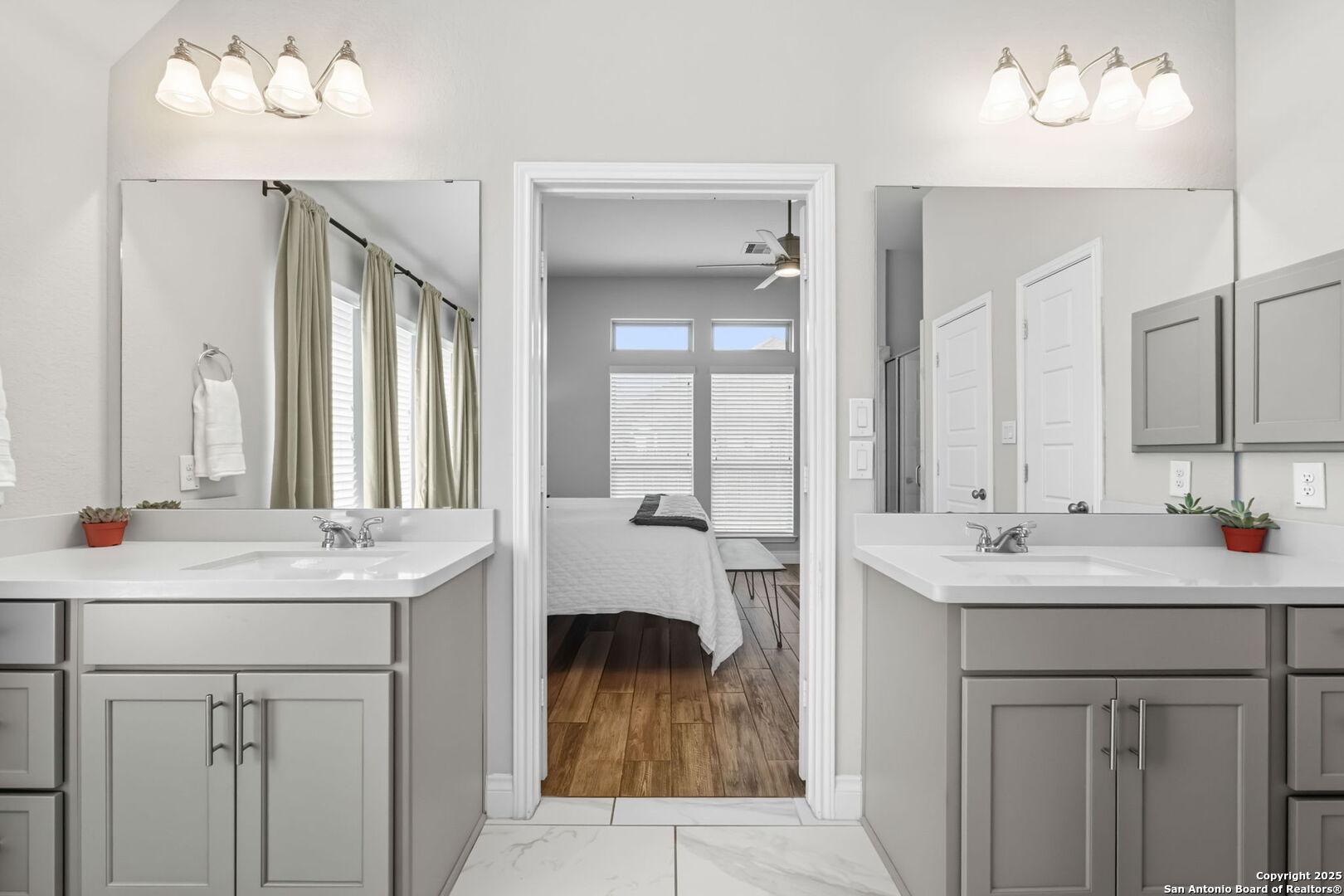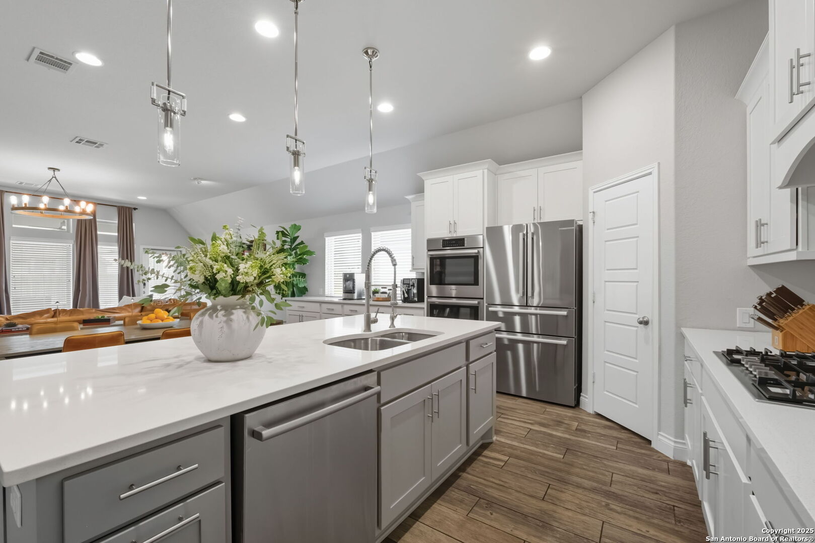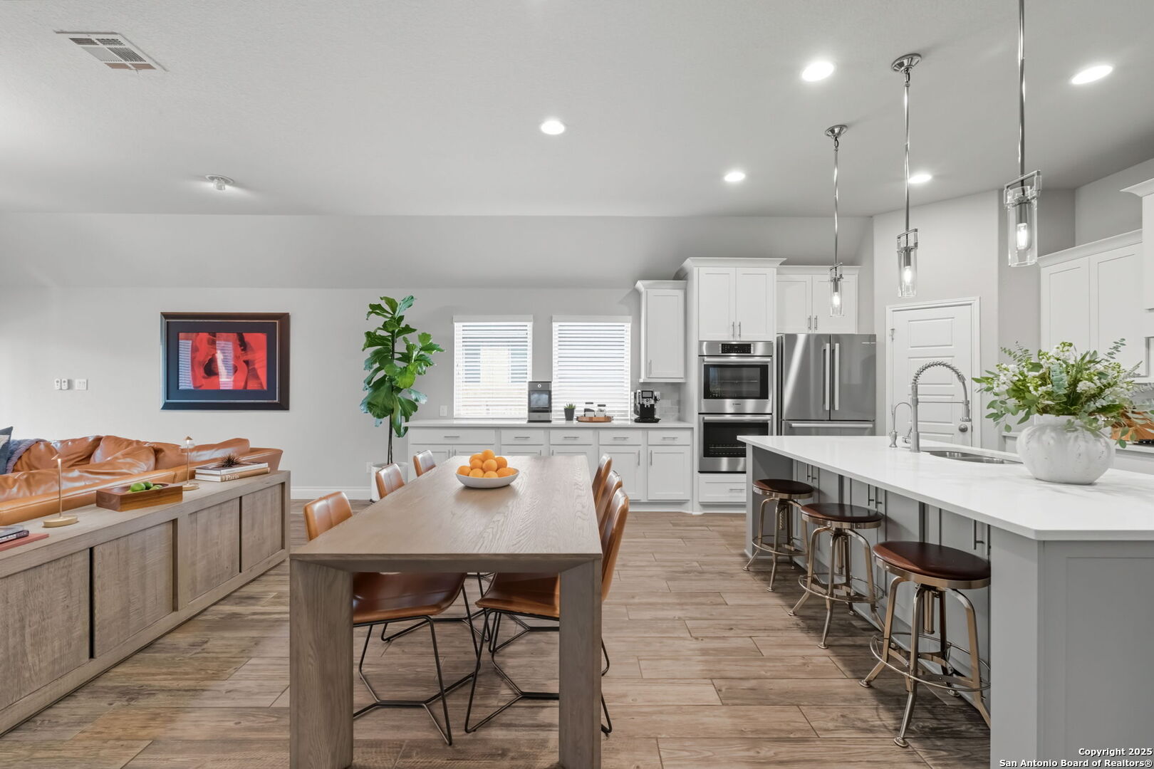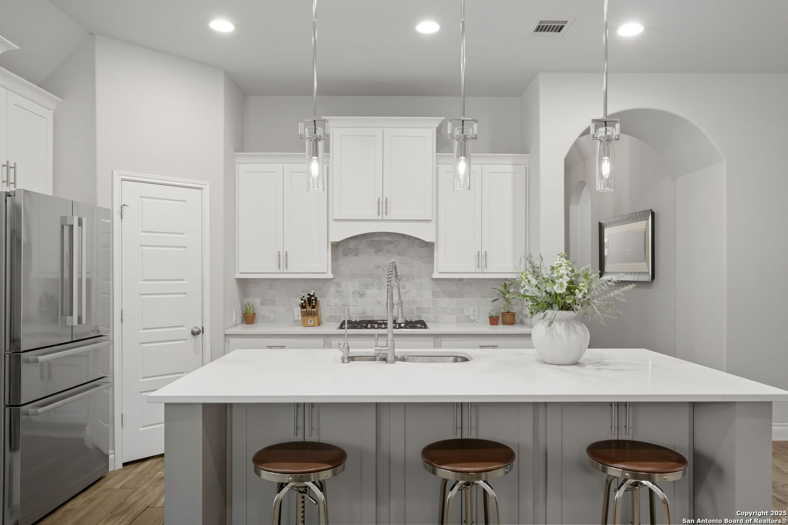 ASSUMABLE VA LOAN AVAILABLE AT 2.25 PERCENT INTEREST RATE WITH APPROVED BUYER Welcome to this thoughtfully designed single-story home located inside the gated community of Balcones Creek in Boerne. The open-concept layout features soaring ceilings, upgraded floors and lighting, and a flexible dedicated office (or gym-see pictures). At the heart of the home, the expansive living area flows seamlessly into the gourmet kitchen and dining spaces-perfect for entertaining or everyday living. The spacious primary suite includes a spa-like bath and dual walk-in closets and one of the secondary bedrooms incudes its own private en-suite bath making it ideal for guests or family members. Step outside to an inviting covered patio with an elevated fire pit, while the side yard offers raised garden beds providing a retreat with room to grow. Balcones Creek residents enjoy resort-style amenities including a sparkling pool, clubhouse, walking trails, and parks. The neighborhood blends the peaceful charm of the Hill Country with convenient access to Boerne ISD schools, boutique shopping and dining in Downtown Boerne, the brand-new HEB, and a quick commute to San Antonio via I-10. Included: Tesla Gen 3 Wall Charger delivering up to 44 miles of range per hour at 11.5 kW-50 percent faster than a standard mobile connector.