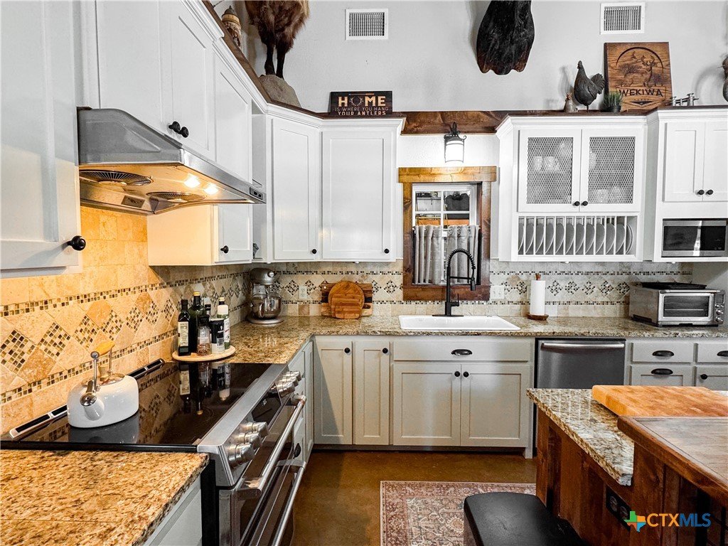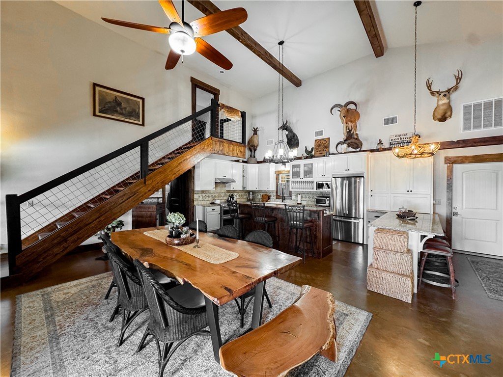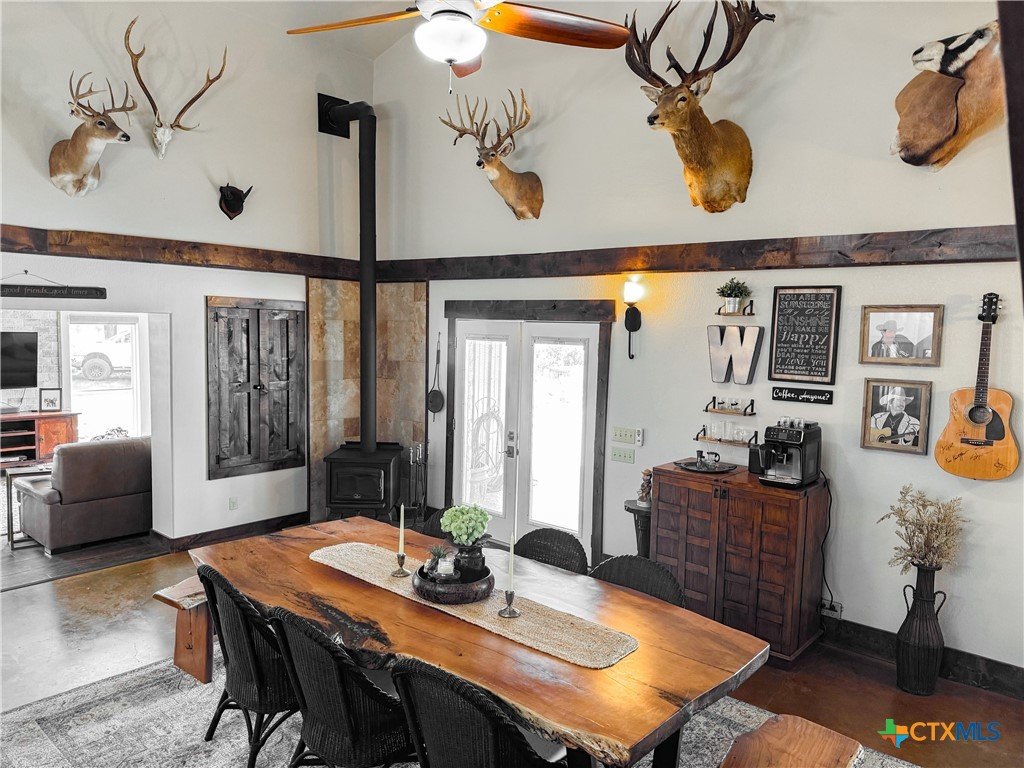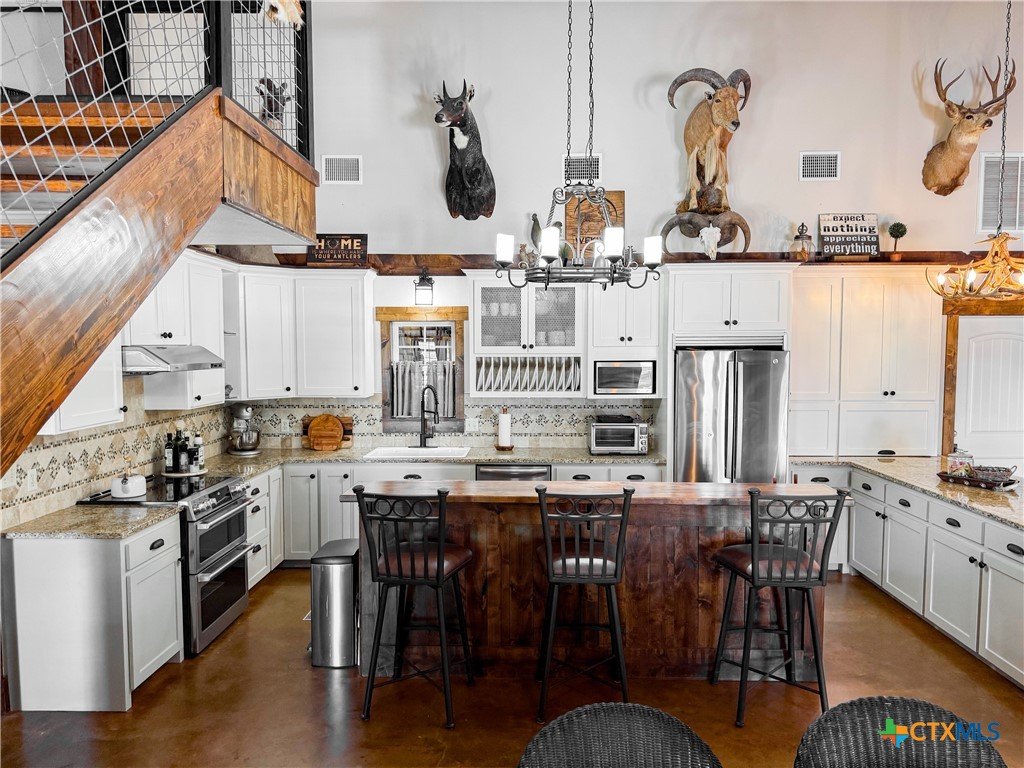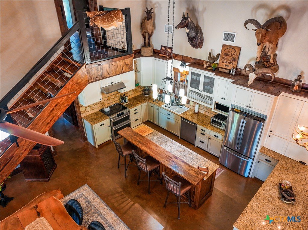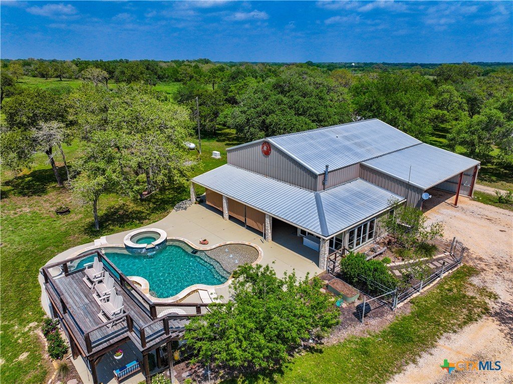 South Texas Game Ranch Oasis in Yorktown, TX Main Residence & Living Spaces The primary residence is a charming and spacious 3-bedroom, 2-bathroom home with an open-concept kitchen and dining area, perfect for entertaining or cozy family living. Designed with a metal and limestone exterior, the home features soaring ceilings, a pot belly stove, and large windows that invite natural light throughout. The kitchen is beautifully appointed with granite countertops, craftsman cabinetry, tile and granite backsplash, stainless steel appliances, and a farmhouse sink. An oversized, insulated drive-through garage with ample storage is attached to the main house. Outdoor Retreat Cool off during hot Texas summers in the custom-designed in-ground pool, complete with a slide and hot tub. Enjoy evenings under the stars in the spa or relax in the shade of the poolside covered patio and outdoor lounge. The sunning deck and outdoor cooking area make this the ultimate space for gatherings and quiet relaxation alike. Guest Accommodations & Ranch Amenities A separate limestone guest home offers 2 bedrooms and 2 bathrooms, with each room having its own entrance and access to a covered front porch ideal for hosting visitors or accommodating a ranch manager. The well-equipped primary barn includes drive-through roll-up doors, concrete-floored carports, and extended covered areas for ranch equipment. A professional-grade processing kitchen and walk-in cooler make game processing convenient and efficient. Wildlife & Exotics The Warren Ranch is home to an impressive array of exotic and native animals, including Red Stag, Axis, Oryx, Pere David, Black Buck deer, Rhea birds, trophy White-tail deer, as well as native species like feral hogs, coyotes, foxes, bobcats, and various birds of prey. Three water wells supply the ranch residences and ponds, ensuring self-sufficiency and ease of operation