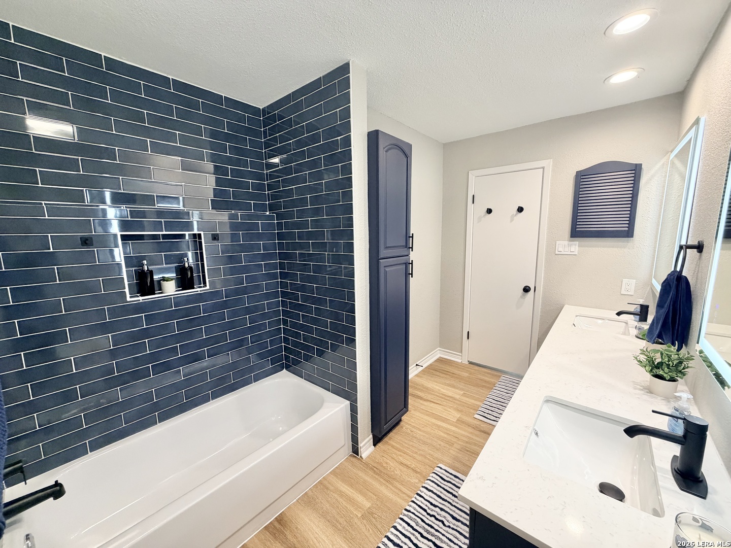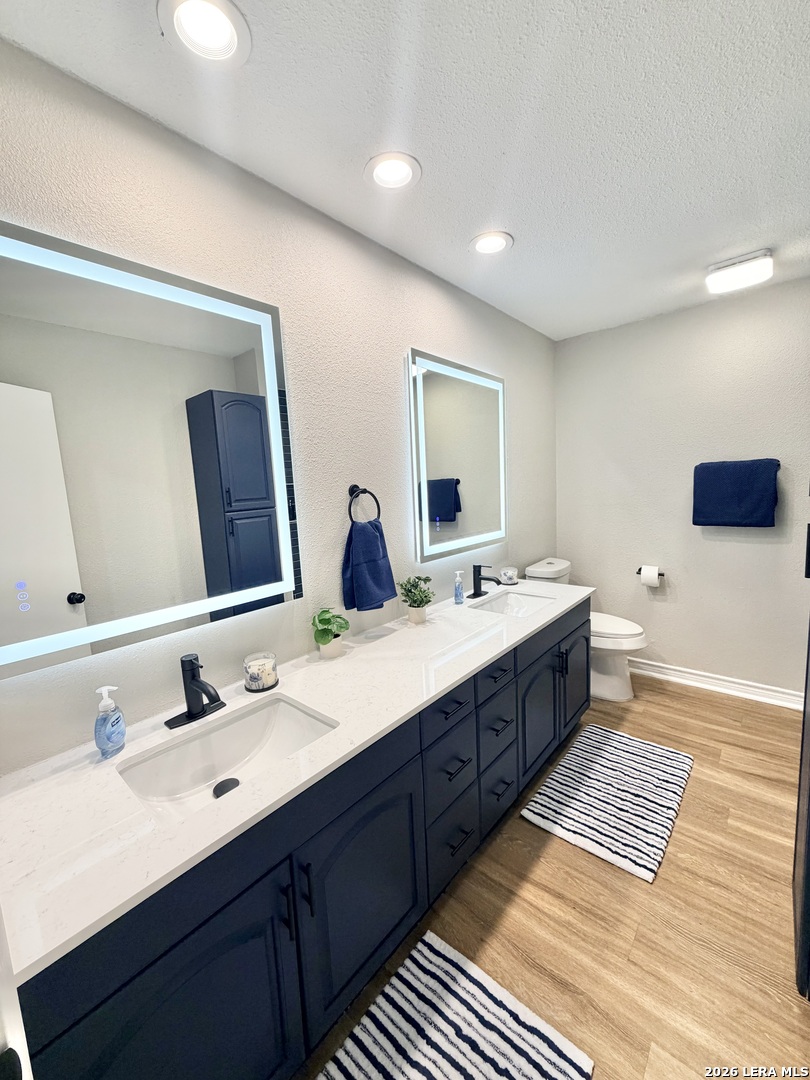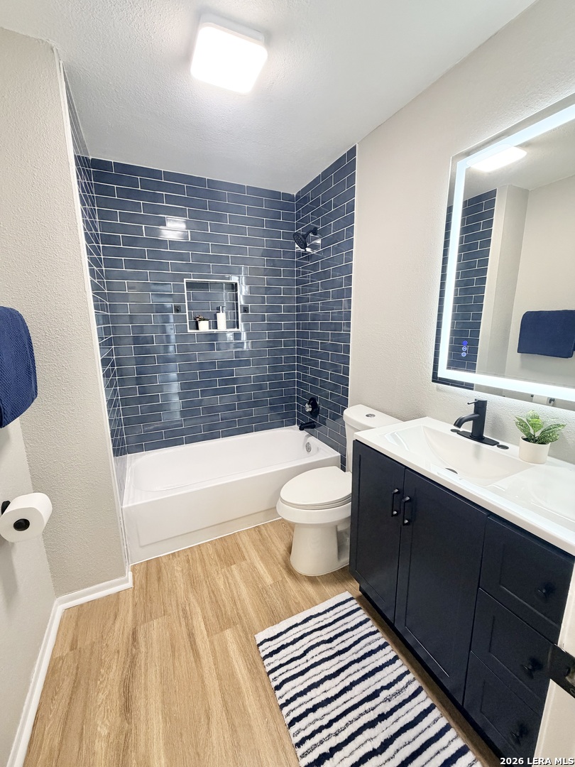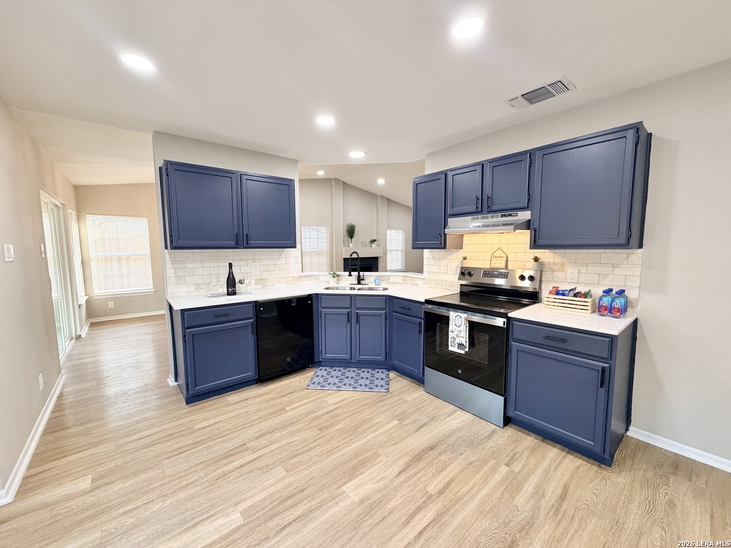 Beautifully updated 3-bedroom, 2-bath home offering 1,867 sq ft in a quiet Converse neighborhood just a few blocks from Miller's Point Elementary. Features include a new roof, fresh interior & exterior paint, luxury vinyl plank flooring, recessed can lighting on dimmers in the living room, kitchen, & primary bedroom, updated fixtures throughout. The kitchen features quartz countertops, a custom backsplash, & brand-new stainless steel appliances. The oversized primary suite includes a walk-in closet & an impressive primary bath with quartz countertops, a large double-sink vanity, extra storage, lighted mirrors, & both bathrooms feature stunning blue tile shower/tub combinations with new fixtures and new toilets. Enjoy the covered back patio, new privacy fence, & new sidewalk. Conveniently located near Live Oak, I-35, Randolph AFB, shopping, dining, and parks. Move-in ready and a must-see!
