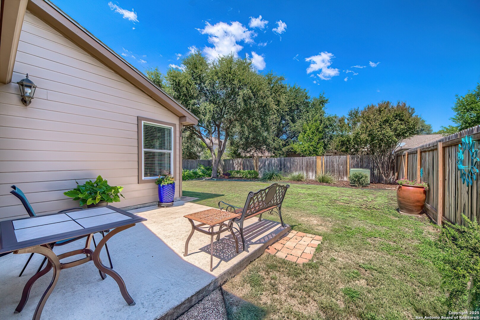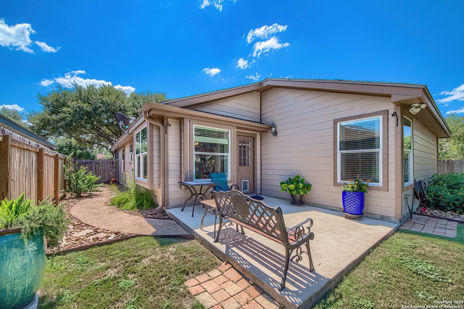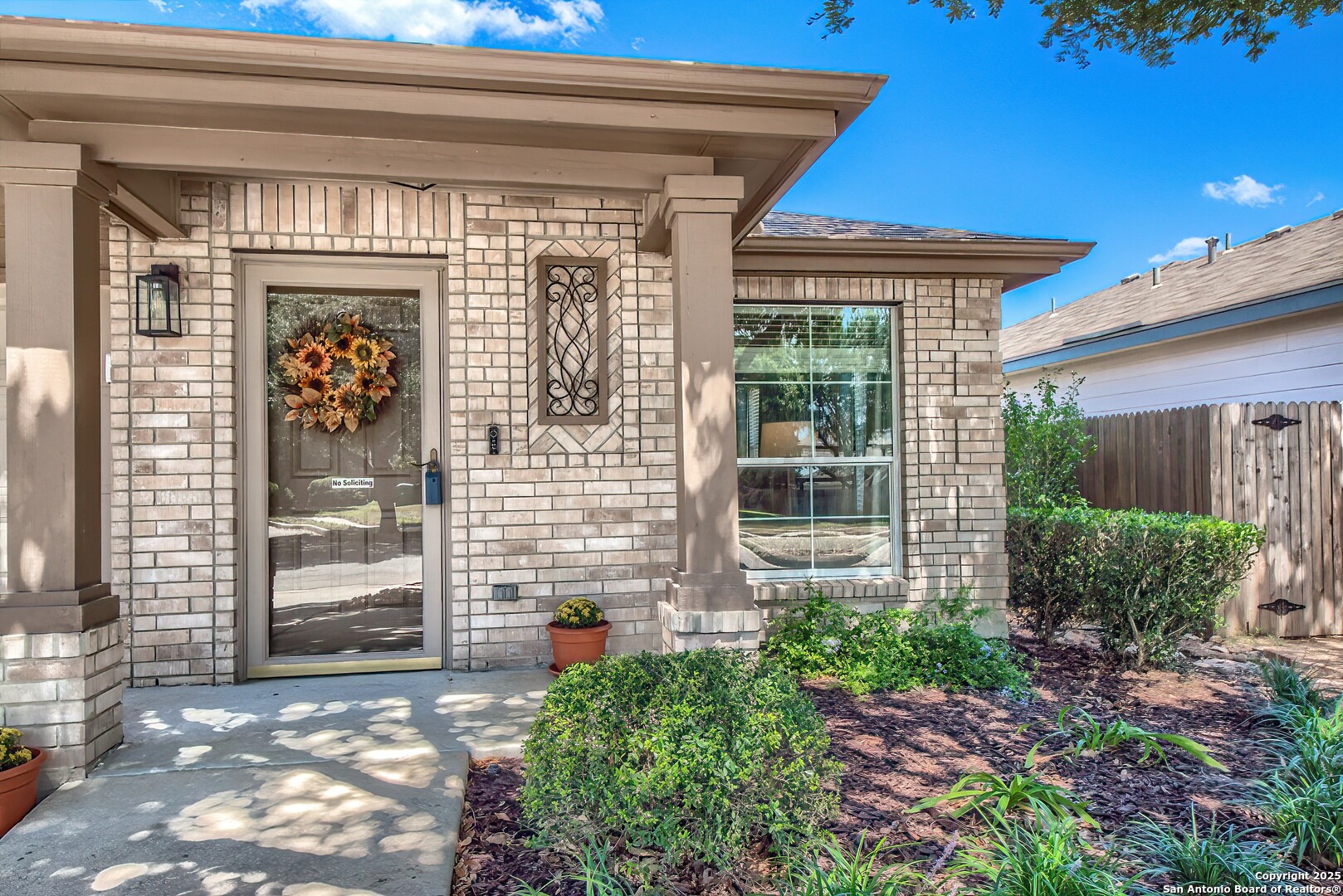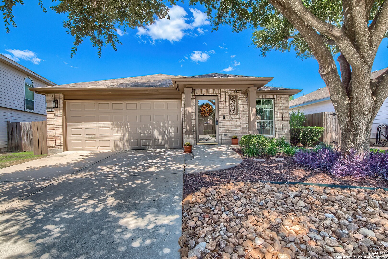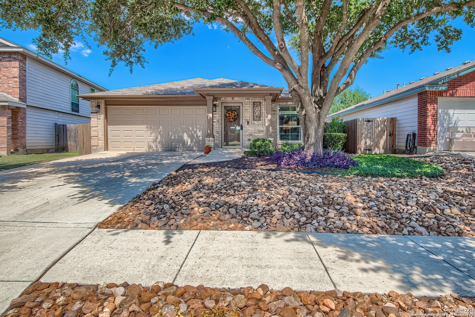 PRIDE OF OWNERSHIP GLEAMS FROM EVERY CORNER THIS AFFORDABLE SINGLE STORY BRICK RANCHER TUCKED INTO ONE OF NW SAN ANTONIO'S MOST POPULAR SUBDIVISIONS. Exit 1604 at Braun and slip into Wildhorse to be impressed by this adorable 3/2 with attached two-car garage that has been so well-maintained it feels like a model home. Set under a wide oak tree, this home welcomes you in with charming curb appeal from the quiet cul-de-sac. A gorgeously landscaped front yard offers an attractive mixture of river rock xeriscaping and drought tolerant, evergreen perennials. Step up to a cozy front porch and through the storm door and front door into an open floor plan awash with natural light and luxury vinyl flooring. The incredibly spacious living room is both inviting and expansive, open to kitchen and dining. Enjoy being a part of everything while you cook from your kitchen with its island, sweeping counter space, highly desirably window over sink and stainless appliances. The happy dining nook, with two darling window seats, offers enough space for a table as well as buffet or china cabinet! The primary suite sits at the back of the home for privacy with an extra wide entrance door, more sleek luxury vinyl flooring and an ensuite to impress. The roomy adjacent bathroom (with another extra wide doorway excellent for ADA access) offers modern taller double vanity with chic quartz countertop & soft close doors, beautiful light fixtures, tub/shower combo and a huge walk-in closet. The secondary bedrooms sit at the front of the house and share a renovated bathroom. An updated quartz vanity gives it a luxurious feel. The utility room sits opposite with extra space for a fridge or freezer! Easily park two vehicles in the attached two-car garage with new garage door and new belt drive automatic opener. Out back is a mini-paradise -- relax from your patio overlooking a level green lawn and lovely yet simple, organic landscaping with river rock beds and perennials fully enclosed by a privacy fence. It is quite obvious, as you walk through, that the sellers have exquisitely maintained this home from top to bottom over the years, adding little touches that make a big difference like radiant barrier and flooring in the attic. If this isn't enough, the range, dishwasher, microwave and refrigerator (GE Profile) all were replaced in the last two years and the sellers added a top notch (Alamo Water Systems) water softener so necessary in San Antonio! Control your Rheem HVAC system through a phone app. The award winning NISD schools include an anchor elementary, Krueger, which is only a short two block walk, Jefferson Middle and Sotomayor High. Add to the perfect recipe this home's superior NW location, sitting just on 1604 -- mere minutes from all the shopping and restaurants not only on 1604, Bandera Road, Helotes and Highway 151, but also easy access to Seaworld, Fiesta Texas, La Cantera Mall, UTSA, Lackland AFB and even an easy shot downtown or to fun in the Hill Country. The extremely well-designed Wildhorse neighborhood is a favorite for many reasons; from the obvious -- its two swimming pools, walking trails and green space to the subtle yet smart like landscaped traffic islands to buffer homes from the main road arteries. Finally, the financial advantages are irresistible. This home sits in an area eligible for a rare loan type, USDA, zero down payment! Plus, the amazingly low 1.8 tax rate makes this home especially attractive to those who love paying less for more. Finally, extreme energy efficiency translates into extremely low energy bills that average $125/mo. Try to find one reason this home does not make sense! Hurry to make her your home before someone else beats you to it!