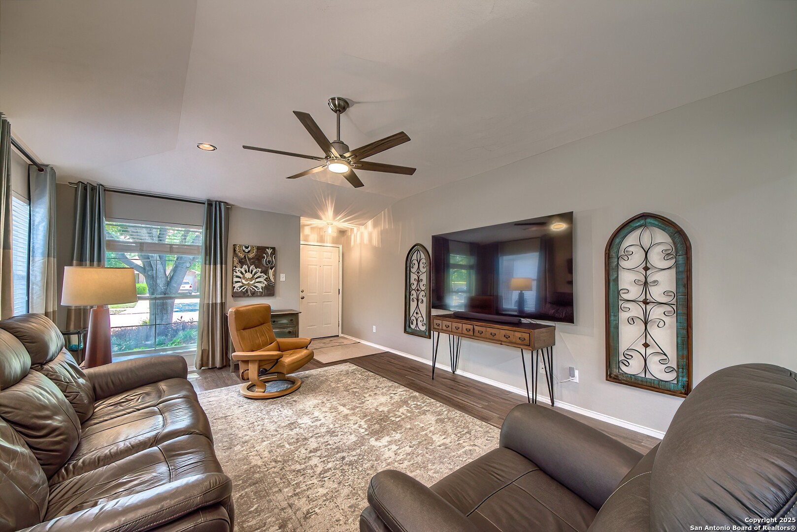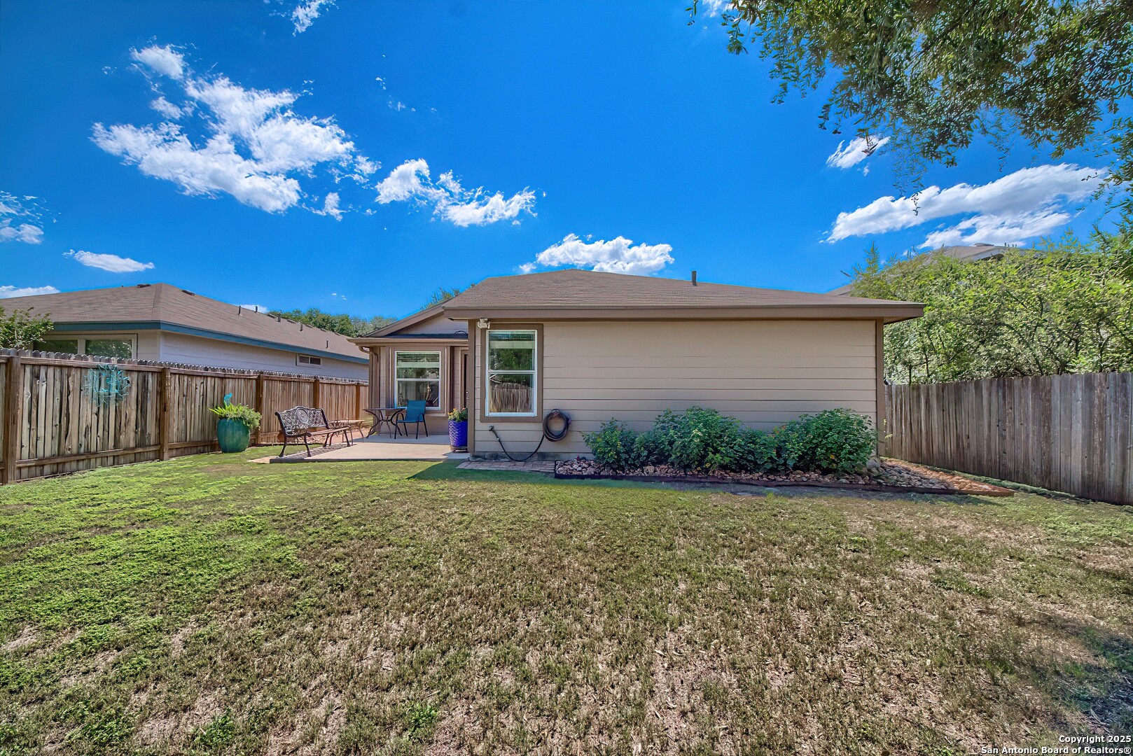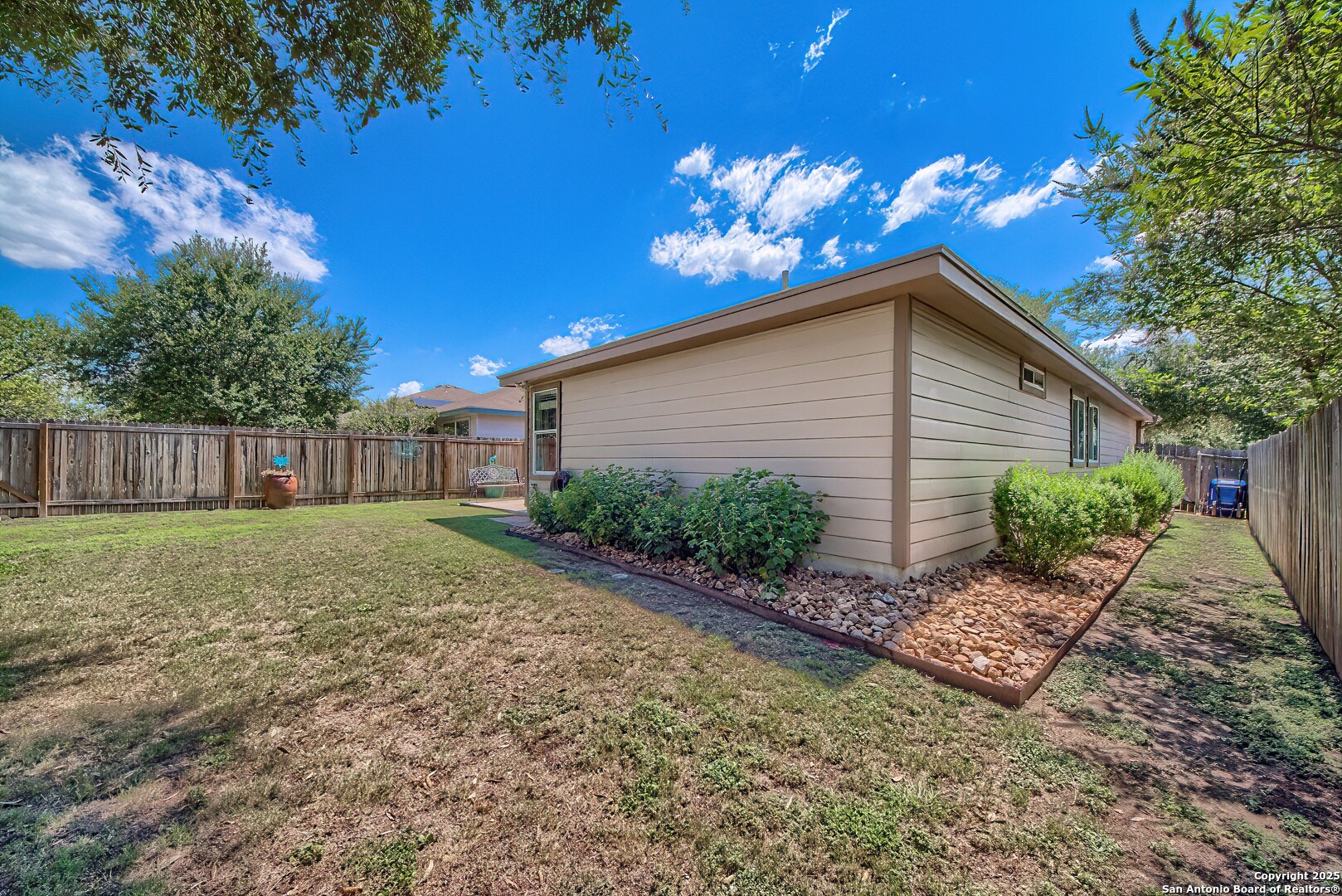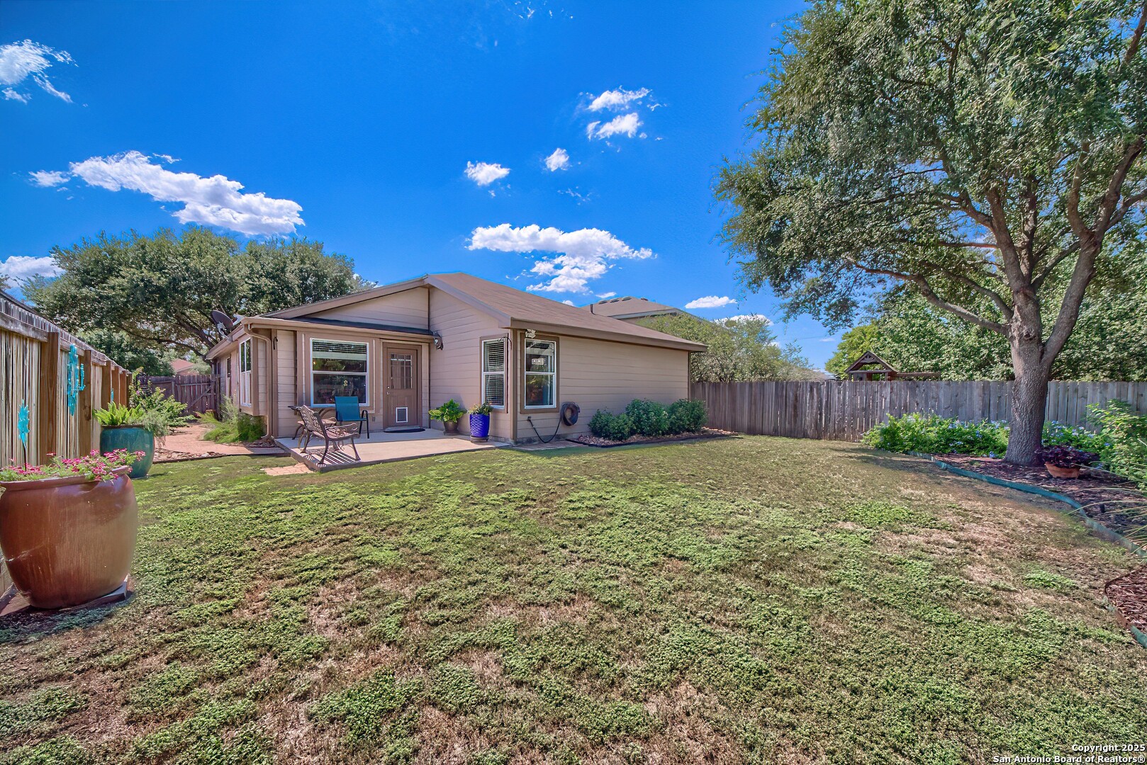 PRIDE OF OWNERSHIP GLEAMS FROM EVERY CORNER THIS AFFORDABLE SINGLE STORY BRICK RANCHER TUCKED INTO ONE OF NW SAN ANTONIO'S MOST POPULAR SUBDIVISIONS. Exit 1604 at Braun and slip into Wildhorse to be impressed by this adorable 3/2 with attached two-car garage that has been so well-maintained it feels like a model home. Set under a wide oak tree, this home welcomes you in with charming curb appeal from the quiet cul-de-sac. A gorgeously landscaped front yard offers an attractive mixture of river rock xeriscaping and drought tolerant, evergreen perennials. Step up to a cozy front porch and through the storm door and front door into an open floor plan awash with natural light and luxury vinyl flooring. The incredibly spacious living room is both inviting and expansive, open to kitchen and dining. Enjoy being a part of everything while you cook from your kitchen with its island, sweeping counter space, highly desirably window over sink and stainless appliances. The happy dining nook, with two darling window seats, offers enough space for a table as well as buffet or china cabinet! The primary suite sits at the back of the home for privacy with an extra wide entrance door, more sleek luxury vinyl flooring and an ensuite to impress. The roomy adjacent bathroom (with another extra wide doorway excellent for ADA access) offers modern taller double vanity with chic quartz countertop & soft close doors, beautiful light fixtures, tub/shower combo and a huge walk-in closet. The secondary bedrooms sit at the front of the house and share a renovated bathroom. An updated quartz vanity gives it a luxurious feel. The utility room sits opposite with extra space for a fridge or freezer! Easily park two vehicles in the attached two-car garage with new garage door and new belt drive automatic opener. Out back is a mini-paradise -- relax from your patio overlooking a level green lawn and lovely yet simple, organic landscaping with river rock beds and perennials fully enclosed by a privacy fence. It is quite obvious, as you walk through, that the sellers have exquisitely maintained this home from top to bottom over the years, adding little touches that make a big difference like radiant barrier and flooring in the attic. If this isn't enough, the range, dishwasher, microwave and refrigerator (GE Profile) all were replaced in the last two years and the sellers added a top notch (Alamo Water Systems) water softener so necessary in San Antonio! Control your Rheem HVAC system through a phone app. The award winning NISD schools include an anchor elementary, Krueger, which is only a short two block walk, Jefferson Middle and Sotomayor High. Add to the perfect recipe this home's superior NW location, sitting just on 1604 -- mere minutes from all the shopping and restaurants not only on 1604, Bandera Road, Helotes and Highway 151, but also easy access to Seaworld, Fiesta Texas, La Cantera Mall, UTSA, Lackland AFB and even an easy shot downtown or to fun in the Hill Country. The extremely well-designed Wildhorse neighborhood is a favorite for many reasons; from the obvious -- its two swimming pools, walking trails and green space to the subtle yet smart like landscaped traffic islands to buffer homes from the main road arteries. Finally, the financial advantages are irresistible. This home sits in an area eligible for a rare loan type, USDA, zero down payment! Plus, the amazingly low 1.8 tax rate makes this home especially attractive to those who love paying less for more. Finally, extreme energy efficiency translates into extremely low energy bills that average $125/mo. Try to find one reason this home does not make sense! Hurry to make her your home before someone else beats you to it!
