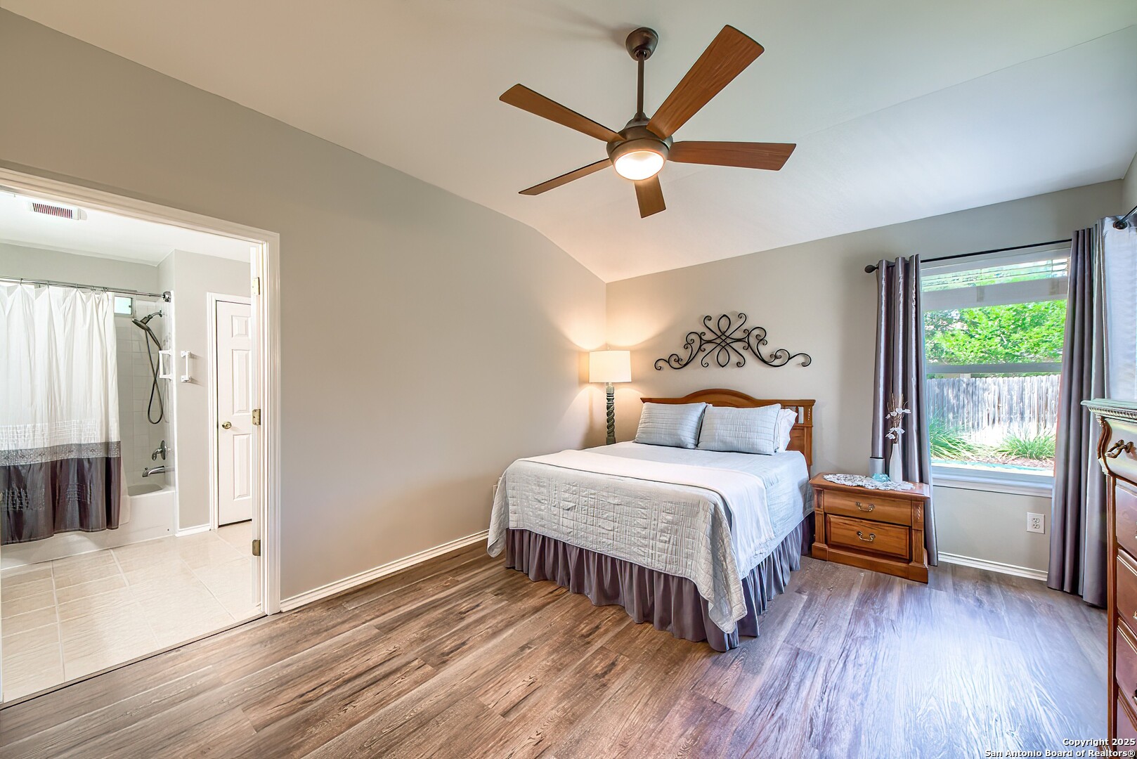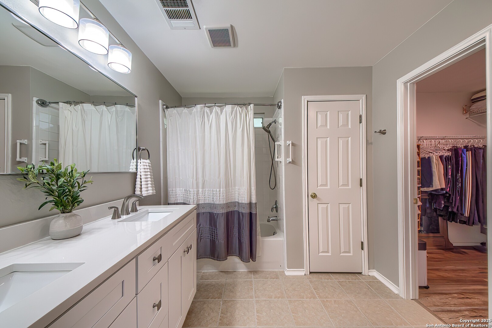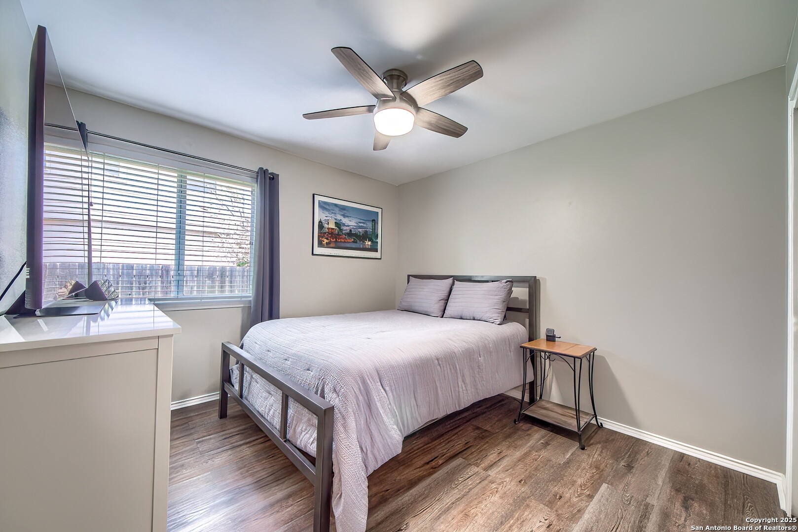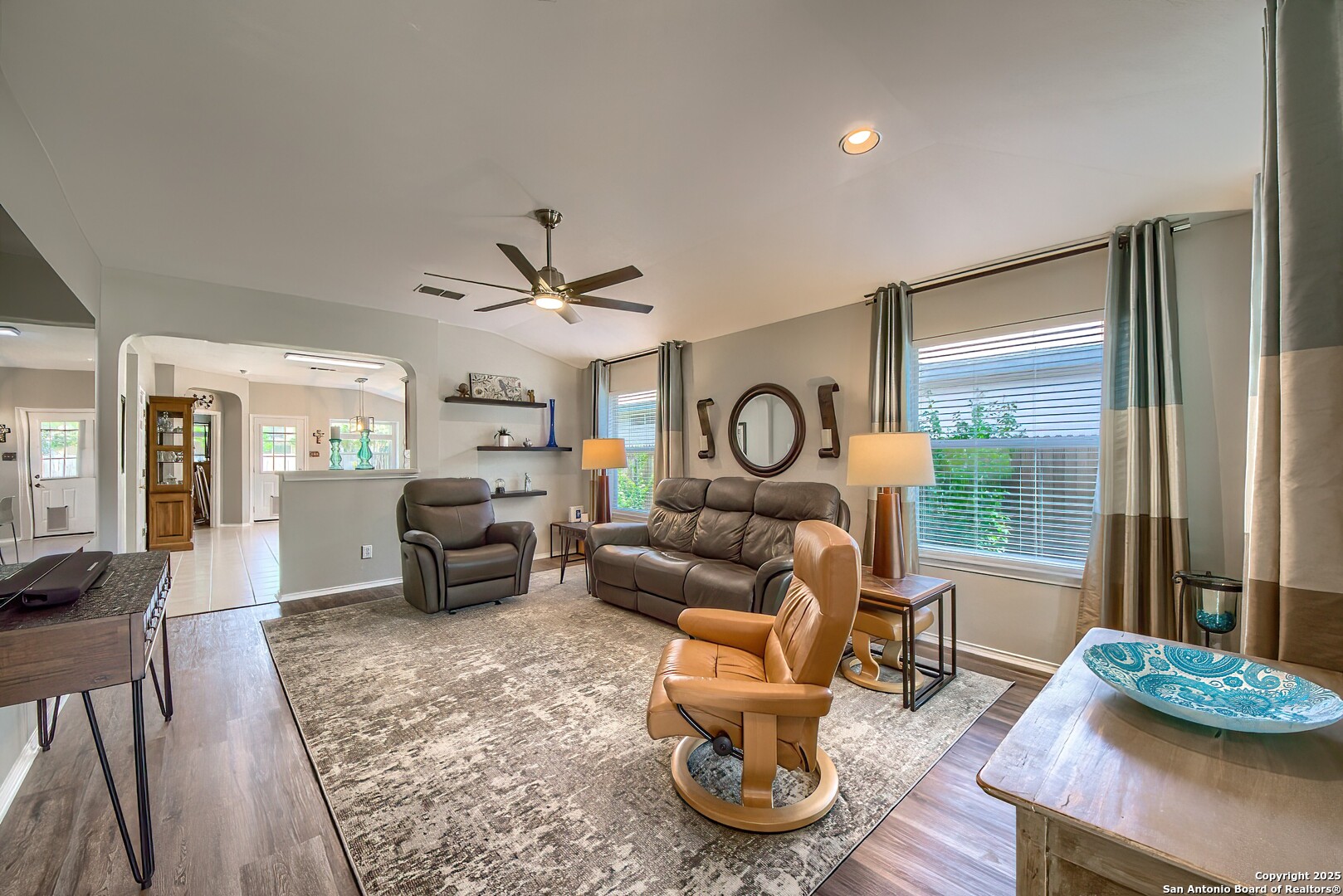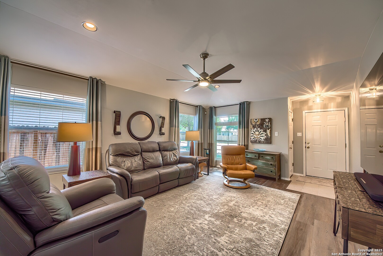 PRIDE OF OWNERSHIP GLEAMS FROM EVERY CORNER THIS AFFORDABLE SINGLE STORY BRICK RANCHER TUCKED INTO ONE OF NW SAN ANTONIO'S MOST POPULAR SUBDIVISIONS. Exit 1604 at Braun and slip into Wildhorse to be impressed by this adorable 3/2 with attached two-car garage that has been so well-maintained it feels like a model home. Set under a wide oak tree, this home welcomes you in with charming curb appeal from the quiet cul-de-sac. A gorgeously landscaped front yard offers an attractive mixture of river rock xeriscaping and drought tolerant, evergreen perennials. Step up to a cozy front porch and through the storm door and front door into an open floor plan awash with natural light and luxury vinyl flooring. The incredibly spacious living room is both inviting and expansive, open to kitchen and dining. Enjoy being a part of everything while you cook from your kitchen with its island, sweeping counter space, highly desirably window over sink and stainless appliances. The happy dining nook, with two darling window seats, offers enough space for a table as well as buffet or china cabinet! The primary suite sits at the back of the home for privacy with an extra wide entrance door, more sleek luxury vinyl flooring and an ensuite to impress. The roomy adjacent bathroom (with another extra wide doorway excellent for ADA access) offers modern taller double vanity with chic quartz countertop & soft close doors, beautiful light fixtures, tub/shower combo and a huge walk-in closet. The secondary bedrooms sit at the front of the house and share a renovated bathroom. An updated quartz vanity gives it a luxurious feel. The utility room sits opposite with extra space for a fridge or freezer! Easily park two vehicles in the attached two-car garage with new garage door and new belt drive automatic opener. Out back is a mini-paradise -- relax from your patio overlooking a level green lawn and lovely yet simple, organic landscaping with river rock beds and perennials fully enclosed by a privacy fence. It is quite obvious, as you walk through, that the sellers have exquisitely maintained this home from top to bottom over the years, adding little touches that make a big difference like radiant barrier and flooring in the attic. If this isn't enough, the range, dishwasher, microwave and refrigerator (GE Profile) all were replaced in the last two years and the sellers added a top notch (Alamo Water Systems) water softener so necessary in San Antonio! Control your Rheem HVAC system through a phone app. The award winning NISD schools include an anchor elementary, Krueger, which is only a short two block walk, Jefferson Middle and Sotomayor High. Add to the perfect recipe this home's superior NW location, sitting just on 1604 -- mere minutes from all the shopping and restaurants not only on 1604, Bandera Road, Helotes and Highway 151, but also easy access to Seaworld, Fiesta Texas, La Cantera Mall, UTSA, Lackland AFB and even an easy shot downtown or to fun in the Hill Country. The extremely well-designed Wildhorse neighborhood is a favorite for many reasons; from the obvious -- its two swimming pools, walking trails and green space to the subtle yet smart like landscaped traffic islands to buffer homes from the main road arteries. Finally, the financial advantages are irresistible. This home sits in an area eligible for a rare loan type, USDA, zero down payment! Plus, the amazingly low 1.8 tax rate makes this home especially attractive to those who love paying less for more. Finally, extreme energy efficiency translates into extremely low energy bills that average $125/mo. Try to find one reason this home does not make sense! Hurry to make her your home before someone else beats you to it!