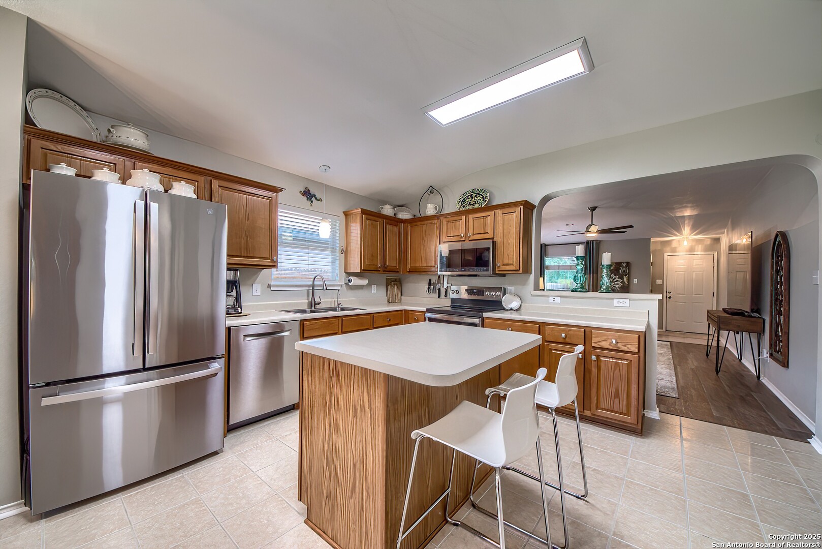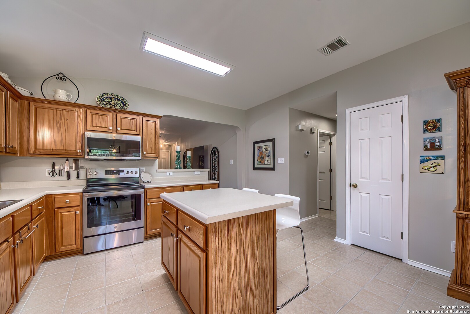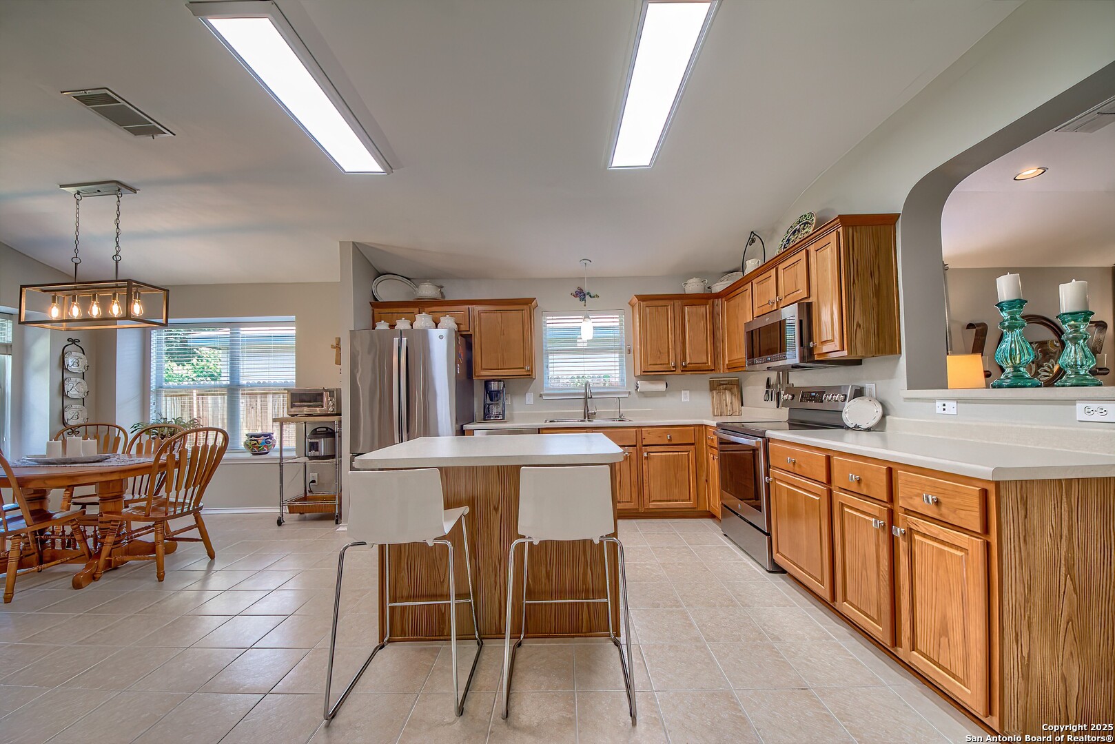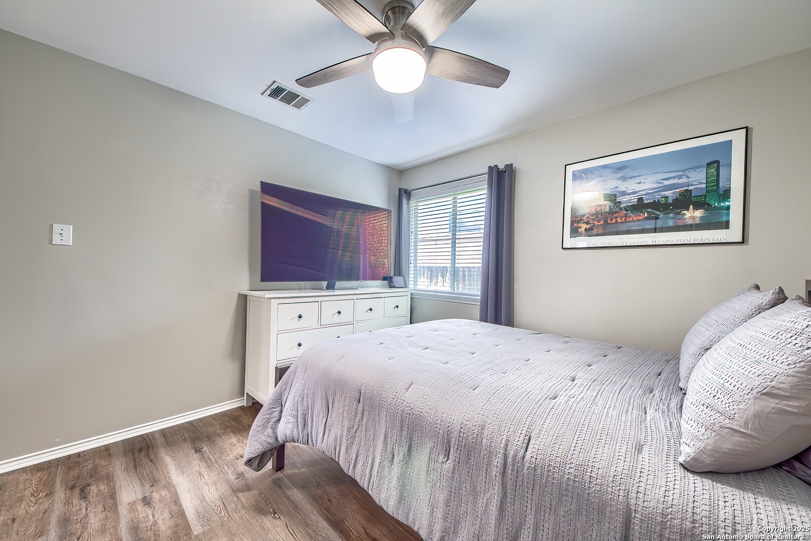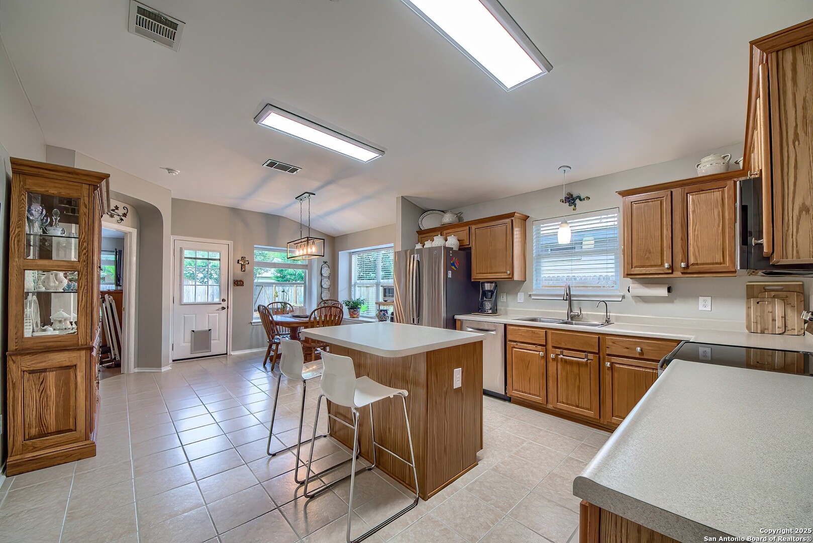 PRIDE OF OWNERSHIP GLEAMS FROM EVERY CORNER THIS AFFORDABLE SINGLE STORY BRICK RANCHER TUCKED INTO ONE OF NW SAN ANTONIO'S MOST POPULAR SUBDIVISIONS. Exit 1604 at Braun and slip into Wildhorse to be impressed by this adorable 3/2 with attached two-car garage that has been so well-maintained it feels like a model home. Set under a wide oak tree, this home welcomes you in with charming curb appeal from the quiet cul-de-sac. A gorgeously landscaped front yard offers an attractive mixture of river rock xeriscaping and drought tolerant, evergreen perennials. Step up to a cozy front porch and through the storm door and front door into an open floor plan awash with natural light and luxury vinyl flooring. The incredibly spacious living room is both inviting and expansive, open to kitchen and dining. Enjoy being a part of everything while you cook from your kitchen with its island, sweeping counter space, highly desirably window over sink and stainless appliances. The happy dining nook, with two darling window seats, offers enough space for a table as well as buffet or china cabinet! The primary suite sits at the back of the home for privacy with an extra wide entrance door, more sleek luxury vinyl flooring and an ensuite to impress. The roomy adjacent bathroom (with another extra wide doorway excellent for ADA access) offers modern taller double vanity with chic quartz countertop & soft close doors, beautiful light fixtures, tub/shower combo and a huge walk-in closet. The secondary bedrooms sit at the front of the house and share a renovated bathroom. An updated quartz vanity gives it a luxurious feel. The utility room sits opposite with extra space for a fridge or freezer! Easily park two vehicles in the attached two-car garage with new garage door and new belt drive automatic opener. Out back is a mini-paradise -- relax from your patio overlooking a level green lawn and lovely yet simple, organic landscaping with river rock beds and perennials fully enclosed by a privacy fence. It is quite obvious, as you walk through, that the sellers have exquisitely maintained this home from top to bottom over the years, adding little touches that make a big difference like radiant barrier and flooring in the attic. If this isn't enough, the range, dishwasher, microwave and refrigerator (GE Profile) all were replaced in the last two years and the sellers added a top notch (Alamo Water Systems) water softener so necessary in San Antonio! Control your Rheem HVAC system through a phone app. The award winning NISD schools include an anchor elementary, Krueger, which is only a short two block walk, Jefferson Middle and Sotomayor High. Add to the perfect recipe this home's superior NW location, sitting just on 1604 -- mere minutes from all the shopping and restaurants not only on 1604, Bandera Road, Helotes and Highway 151, but also easy access to Seaworld, Fiesta Texas, La Cantera Mall, UTSA, Lackland AFB and even an easy shot downtown or to fun in the Hill Country. The extremely well-designed Wildhorse neighborhood is a favorite for many reasons; from the obvious -- its two swimming pools, walking trails and green space to the subtle yet smart like landscaped traffic islands to buffer homes from the main road arteries. Finally, the financial advantages are irresistible. This home sits in an area eligible for a rare loan type, USDA, zero down payment! Plus, the amazingly low 1.8 tax rate makes this home especially attractive to those who love paying less for more. Finally, extreme energy efficiency translates into extremely low energy bills that average $125/mo. Try to find one reason this home does not make sense! Hurry to make her your home before someone else beats you to it!