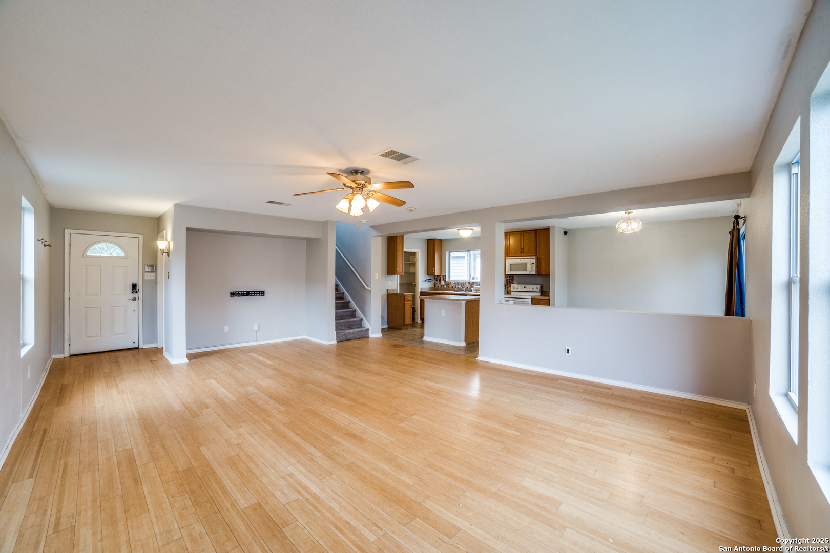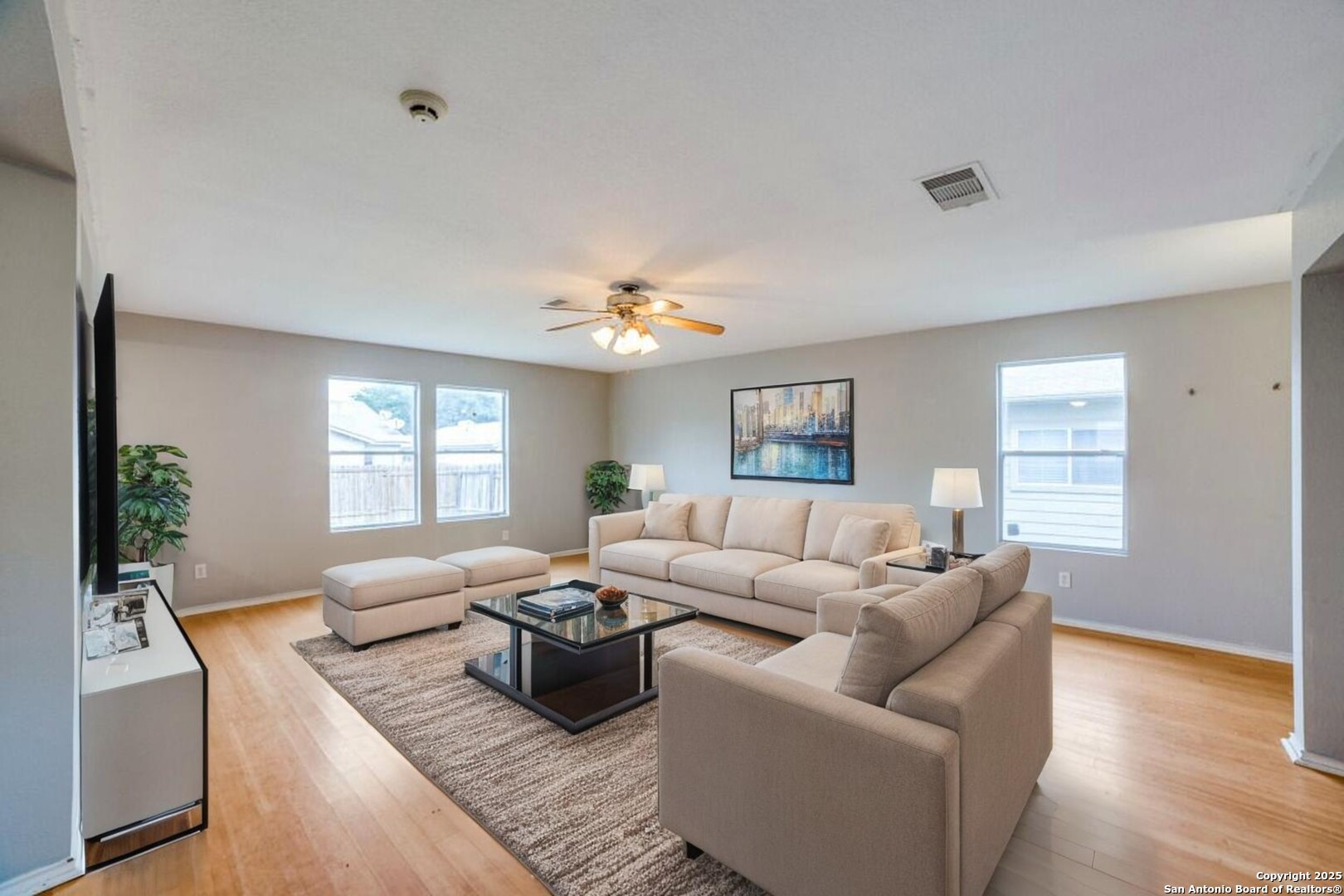 Home location qualifies for USDA No down payment financing. No City Taxes! Located just minutes from Lackland Air Force Base and Boeing, this well-maintained 3-bedroom, 2.5-bath home offers exceptional convenience with easy access to major highways, shopping, and dining. Whether you're a first-time buyer or seeking a promising investment opportunity, this property is packed with potential. Step inside to a spacious family room that seamlessly connects to the island kitchen, featuring ample counter space-perfect for both everyday living and entertaining. A generous dining area overlooks the backyard creating an ideal indoor-outdoor flow. Upstairs, the expansive primary suite boasts a large walk-in closet and private bath. Two additional bedrooms offer flexibility for family, guests, or a home office. Situated on a generous lot in the highly sought-after Northside Independent School District. Don't miss your chance to own this inviting home. Schedule your showing today!