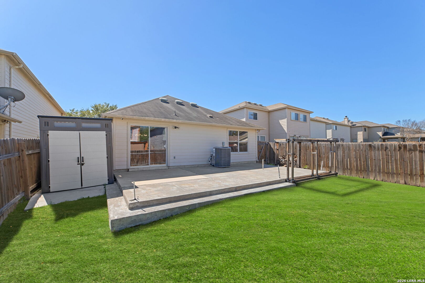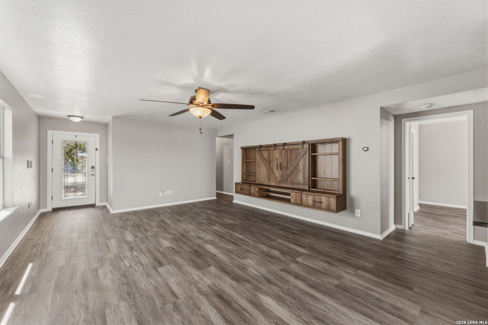 Charming and move-in ready, this 3/2 home offers comfortable open-concept living with thoughtful updates throughout. Fresh interior paint & luxury vinyl plank flooring create a clean, modern feel while keeping the home low-maintenance & easy to enjoy. Custom built-ins provide a smart solution for entertainment equipment & include a convenient workspace cubby. Major upgrades add long-term value & peace of mind, including a tankless water heater & water filtration system (2022), whole-home air purification system (2023), new concrete driveway & walkway (2024), 20x30 patio slab with electrical conduit (2022), 8x8 slab with ramp for a storage shed (2022) ready for future outdoor projects or storage. Foundation work completed (2020) and a lifetime transferable foundation warranty is available (for a fee) and provides added confidence for the next owner. Conveniently located inside Loop 1604 with easy access to Lackland Air Force Base, SeaWorld, shopping and dining.