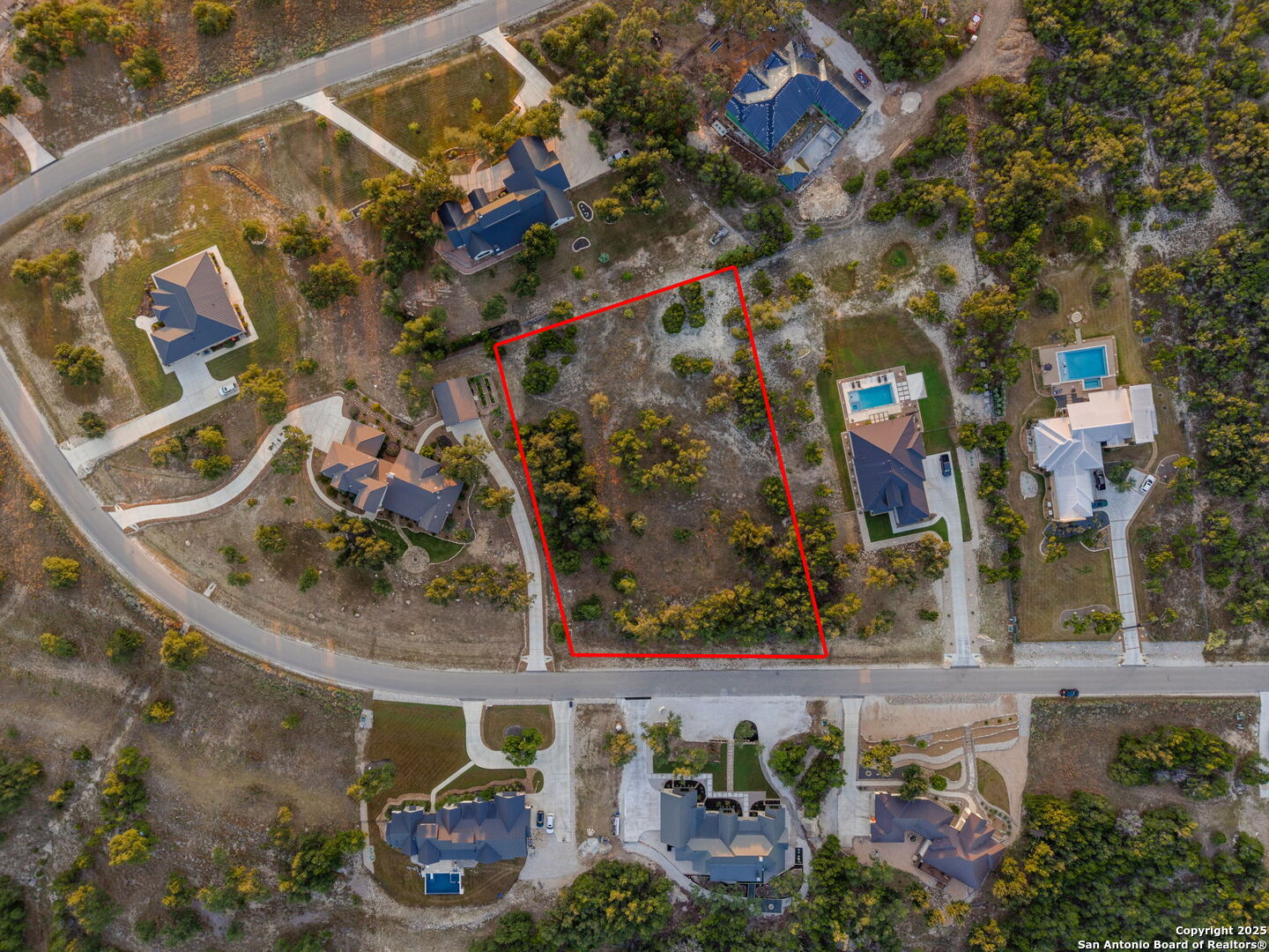 Experience Alto Lago living at its finest. This level homesite is ready for your dream home, with mature trees along the perimeter providing privacy and a picturesque northwest view showcasing Hill Country beauty. Ideally located just 20 minutes from Bulverde and 30 minutes from New Braunfels, you'll enjoy easy access to town while embracing peaceful Hill Country living. Neighborhood amenities include private lake access, and a pavilion perfect for gatherings with family and friends.