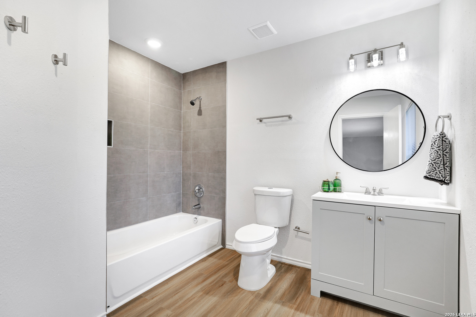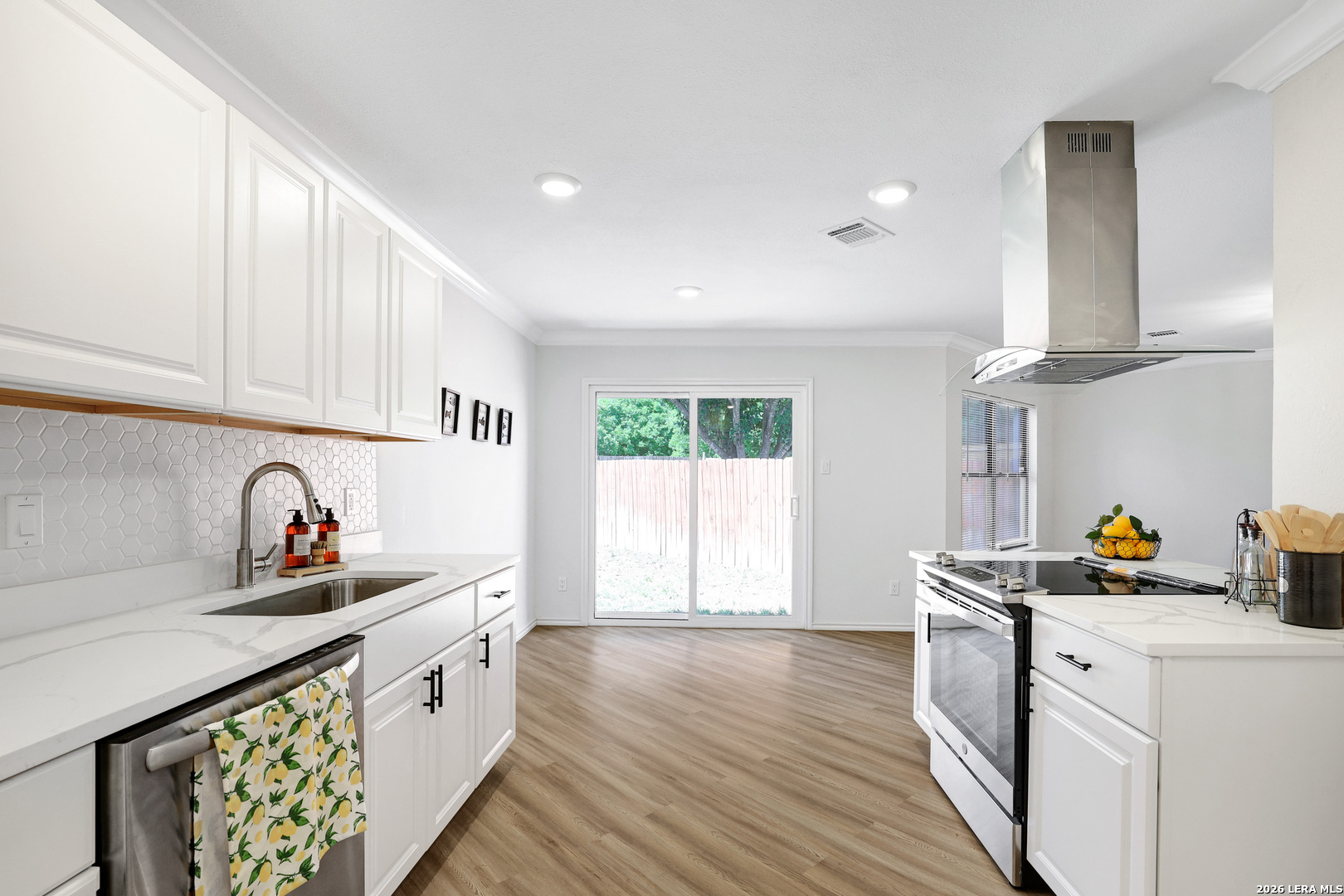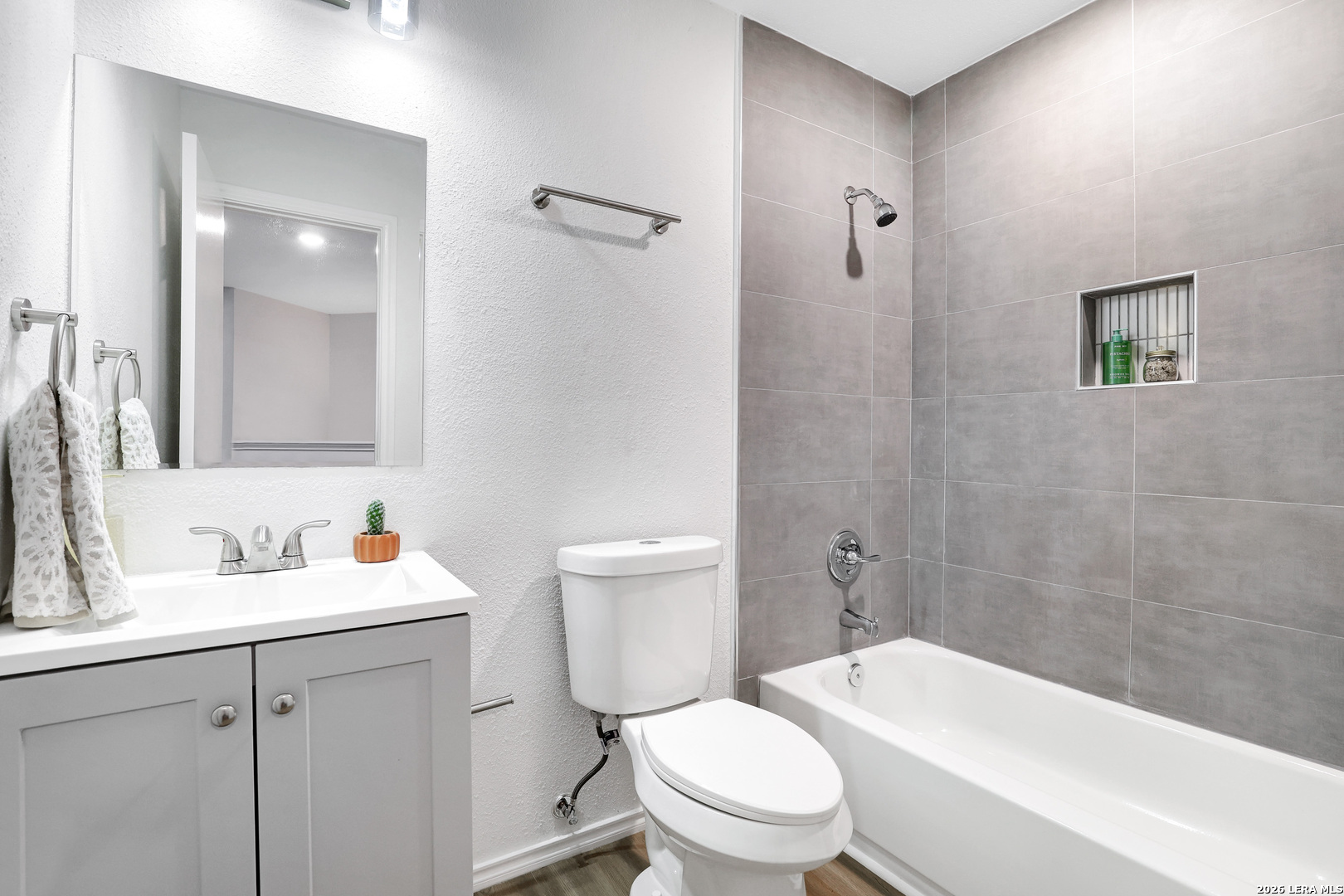Discover this beautifully updated two-story home, ideally located near SeaWorld and Culebra Road. Offering 4 bedrooms and 2.5 bathrooms, this spacious residence features an inviting open-concept layout that seamlessly connects the living area, dining space, and breakfast nook-perfect for everyday living and entertaining. The island kitchen is equipped with stainless steel appliances and a sleek oven range, making it a standout for home chefs. The primary suite provides a private retreat with a walk-in closet and a well-appointed en-suite bath. Step outside to a generous backyard shaded by mature trees, ideal for relaxing or hosting gatherings. With a downstairs washer and dryer and modern finishes throughout, this home blends comfort, functionality, and style.