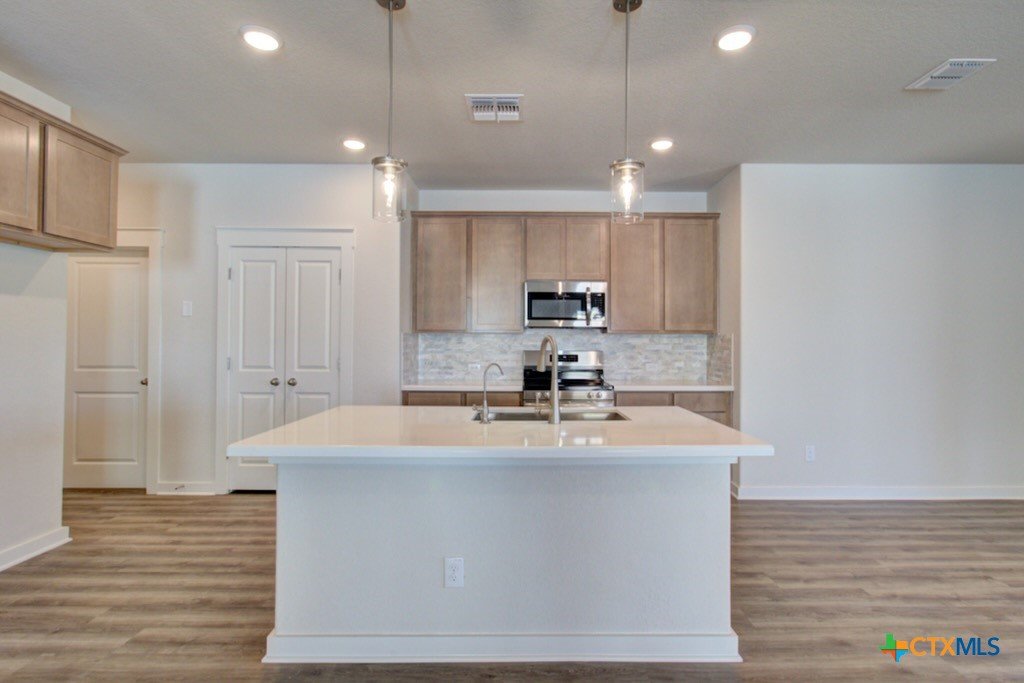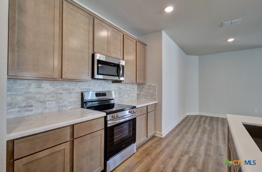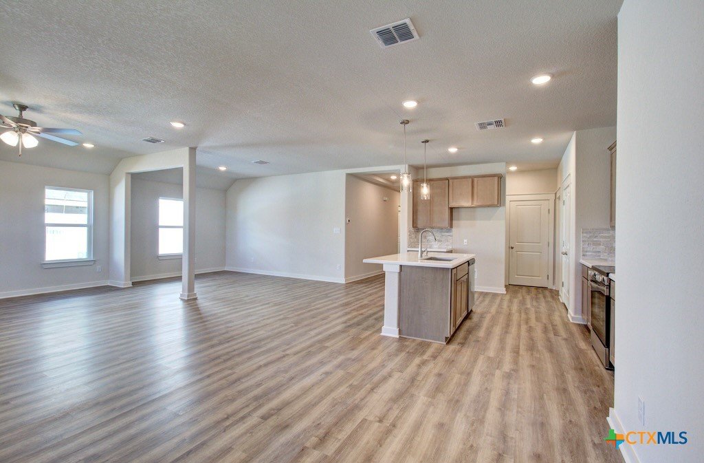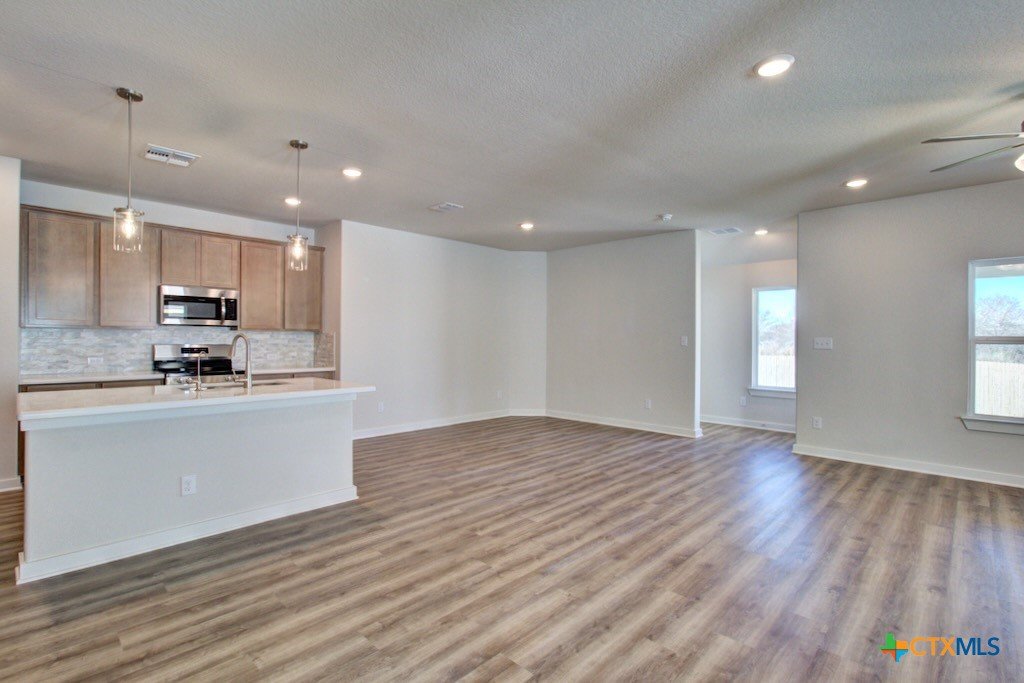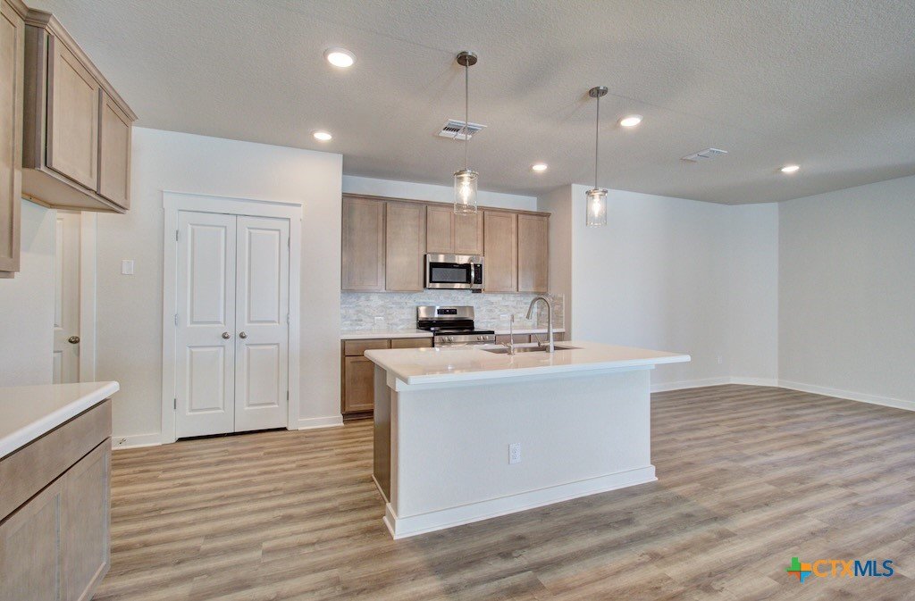 **Enlarged Kitchen Pantry, Upgraded Owner's Bathroom, Enlarged Patio, Upgraded Front Masonry, Upgraded Secondary Bathroom** Come see the popular Driskell floor plan by Brightland Homes, a 1853 SQ FT home with 3 bedrooms and two full bathrooms, with a flex room. The kitchen features an enlarged center island with a barstool overhang, Omega-stone Countertops, 42" cabinets with crown moulding, upgraded stainless steel appliances with an electric range, an externally circulated fan, a walk-in pantry