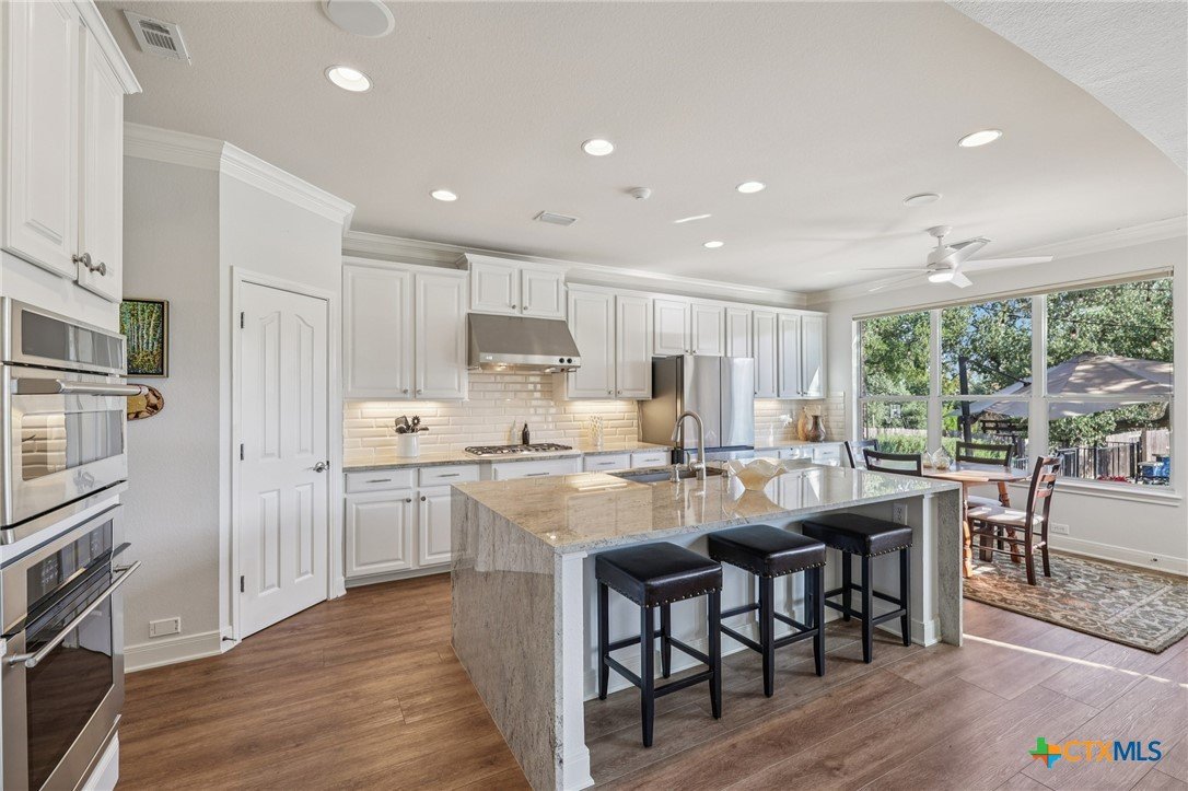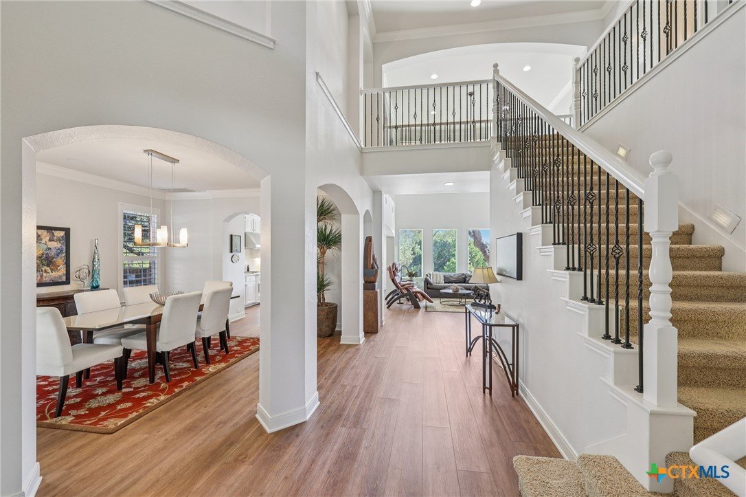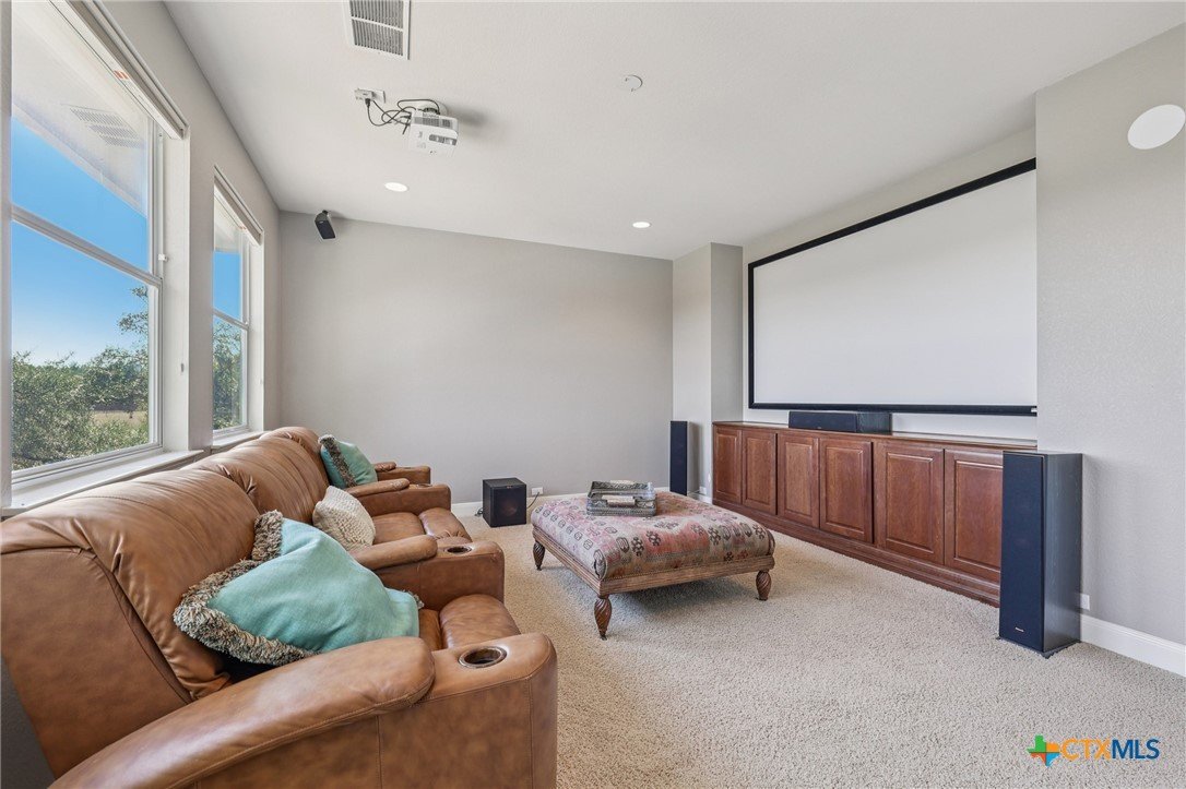 Amazing luxury home situated on over 1/3 of an acre with expansive greenbelt views! This one is a must-see for buyers seeking a luxurious pool, multiple outdoor entertaining areas, a chef's kitchen with waterfall countertops, a downstairs primary suite with private patio access, spacious indoor entertaining areas with stunning views, and four versatile living spaces - including a dedicated home office, a large hobby room with extensive built-in storage, a media room, and a living room with soaring two-story ceilings. With nearly $300K in upgrades, this home delivers all the refined touches you'd expect in an executive residence, including laundry rooms on both levels, a whole-home multi-zone audio system, IQAir MERV 16 air filtration, a tankless water heater with instant hot water recirculating system, a mosquito misting system, an oversized three-car garage with 9’x23’ bays, custom cedar garage doors, and a new roof and primary suite AC in 2024. The backyard is an entertainer’s dream, featuring a resort-style pool - completely remodeled in 2023 - surrounded by expansive stone and Fiberon patios, an outdoor kitchen, and beautiful wooded greenbelt views. The front of the home also offers exceptional outdoor living, with a large covered balcony accessible from two bedrooms and a generous front sitting porch. Located in one of the Austin area's most sought-after communities, Avery Ranch is built around a stunning 18-hole golf course and borders the Brushy Creek trail and park system. Residents enjoy award winning schools and miles of hike-and-bike trails, a 60-acre lake, multiple swimming pools, tennis and sport courts, playgrounds, and more. Ideally situated in NW Austin’s tech corridor, the home offers a quick commute to major employers like Dell, the new Apple Campus, and the Domain, with countless shopping, dining, and entertainment options just minutes away.