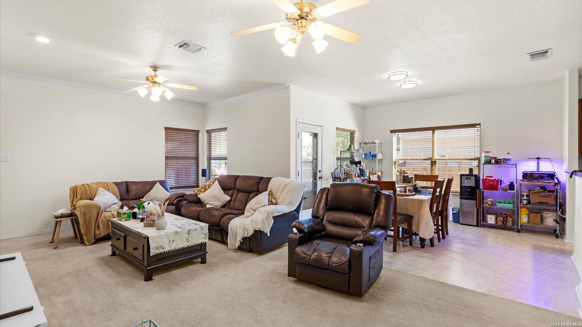 Welcome to 9914 Meadow Lark in Converse, Texas, a spacious and versatile 5-bedroom, 4.5-bath home offering 3,640 square feet of thoughtfully designed living space in the established Rolling Creek community. Ideally located just minutes from Loop 1604, Loop 410, Randolph Air Force Base, and Fort Sam Houston, this home is perfectly positioned for military families, relocation buyers, and multi-generational living. Inside, the home offers a flexible layout designed to accommodate both everyday comfort and entertaining. The main floor features a private office, ideal for working from home, along with both a formal dining room and a bright breakfast area, giving you multiple spaces for gatherings and daily living. The downstairs living room is anchored by a cozy fireplace, creating a welcoming space to relax or host guests. The primary suite on the main level provides privacy and convenience, complete with its own en-suite bathroom. Upstairs, the home continues to impress with a second primary suite with en-suite bath, making it an excellent option for multi-generational households, extended guests, or older children wanting their own space. An additional guest suite with its own bathroom ensures comfort for visitors. A large upstairs flex space provides incredible versatility and can easily function as a game room, media room, second living area, or playroom, depending on your needs. Outside, enjoy the charm of a covered front porch and balcony, perfect for relaxing mornings or unwinding in the evening. The new roof adds peace of mind, while the home's location provides convenient access to major highways, shopping, dining, and military installations throughout the San Antonio metro area. With its generous square footage, flexible floor plan, and prime location near Randolph AFB and Fort Sam, this Converse home offers the space and functionality today's buyers are looking for.