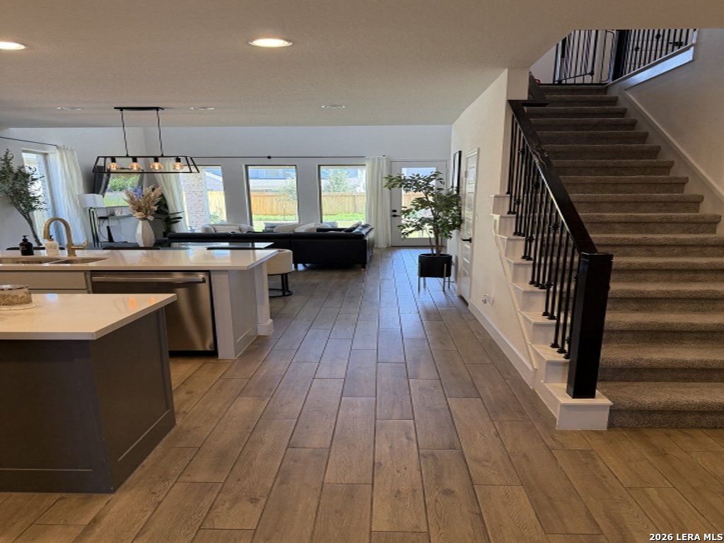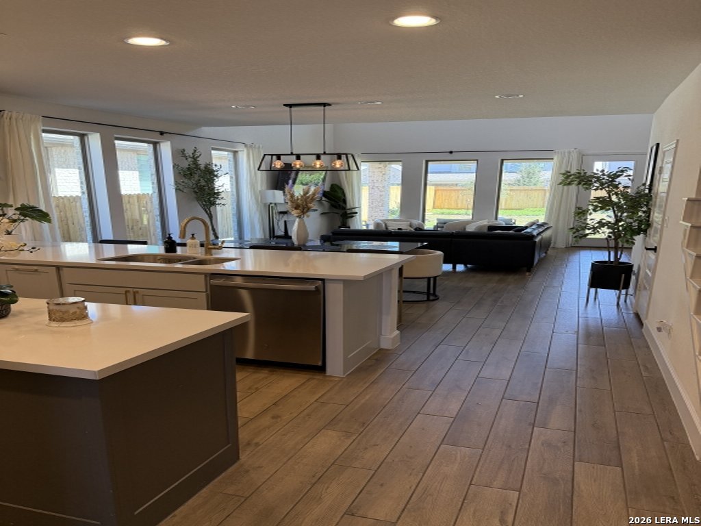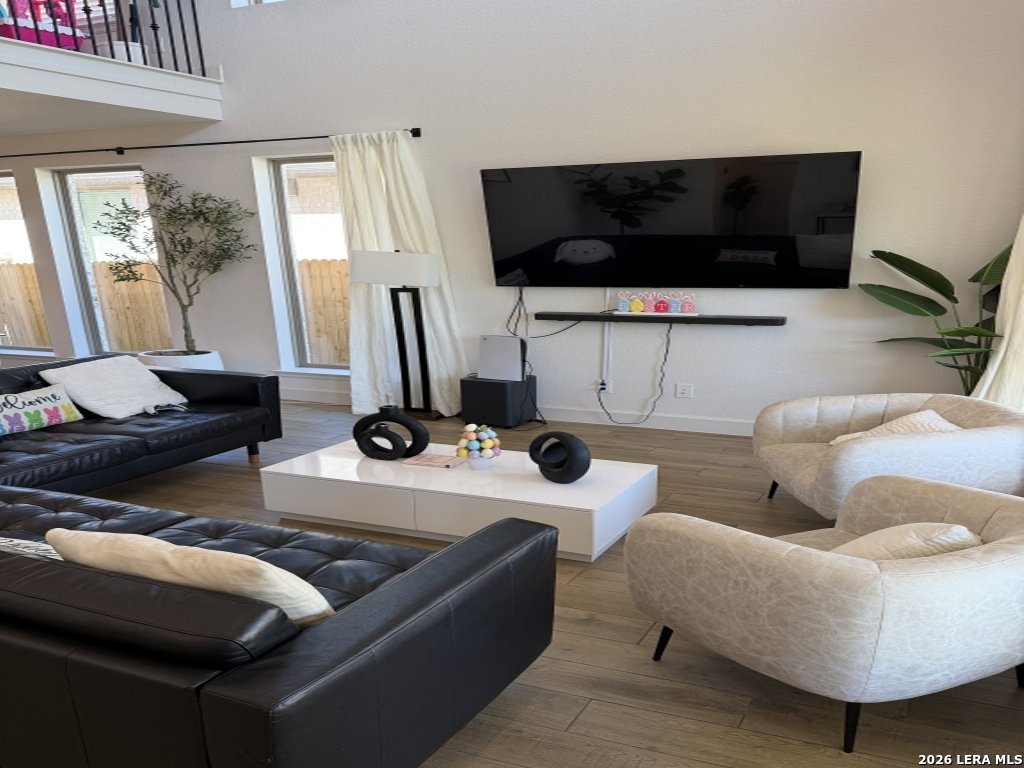 Enter this stunning home featuring an extended entry that leads past a private home office with elegant French doors. The heart of the home showcases a bright, open-concept layout where the kitchen, dining and family room come together seamlessly, ideal for both everyday living and entertaining. The impressive two-story family room boasts soaring 19-foot ceilings and a wall of windows that flood the space with natural light, creating a grand yet inviting atmosphere. The chef-inspired island kitchen offers abundant counter space, a walk-in pantry and a perfect view of the main living areas. The secluded primary suite provides a peaceful retreat, highlighted by large windows and a spa-like bathroom featuring dual vanities, a relaxing garden tub, a separate glass-enclosed shower and a spacious walk-in closet. A secondary bedroom on the first floor adds flexibility for guests or multi-generational living. Upstairs, enjoy a large game room perfect for movie nights or entertaining, along with additional bedrooms that include walk-in closets and a full bathroom. Exit outside to a covered backyard patio, ideal for relaxing or hosting gatherings, complete with a 5-zone sprinkler system for easy maintenance. A utility room, mudroom and two-car garage add everyday convenience to this thoughtfully designed home. This home truly has it all" space, style, and functionality" ready for you to move in and enjoy.