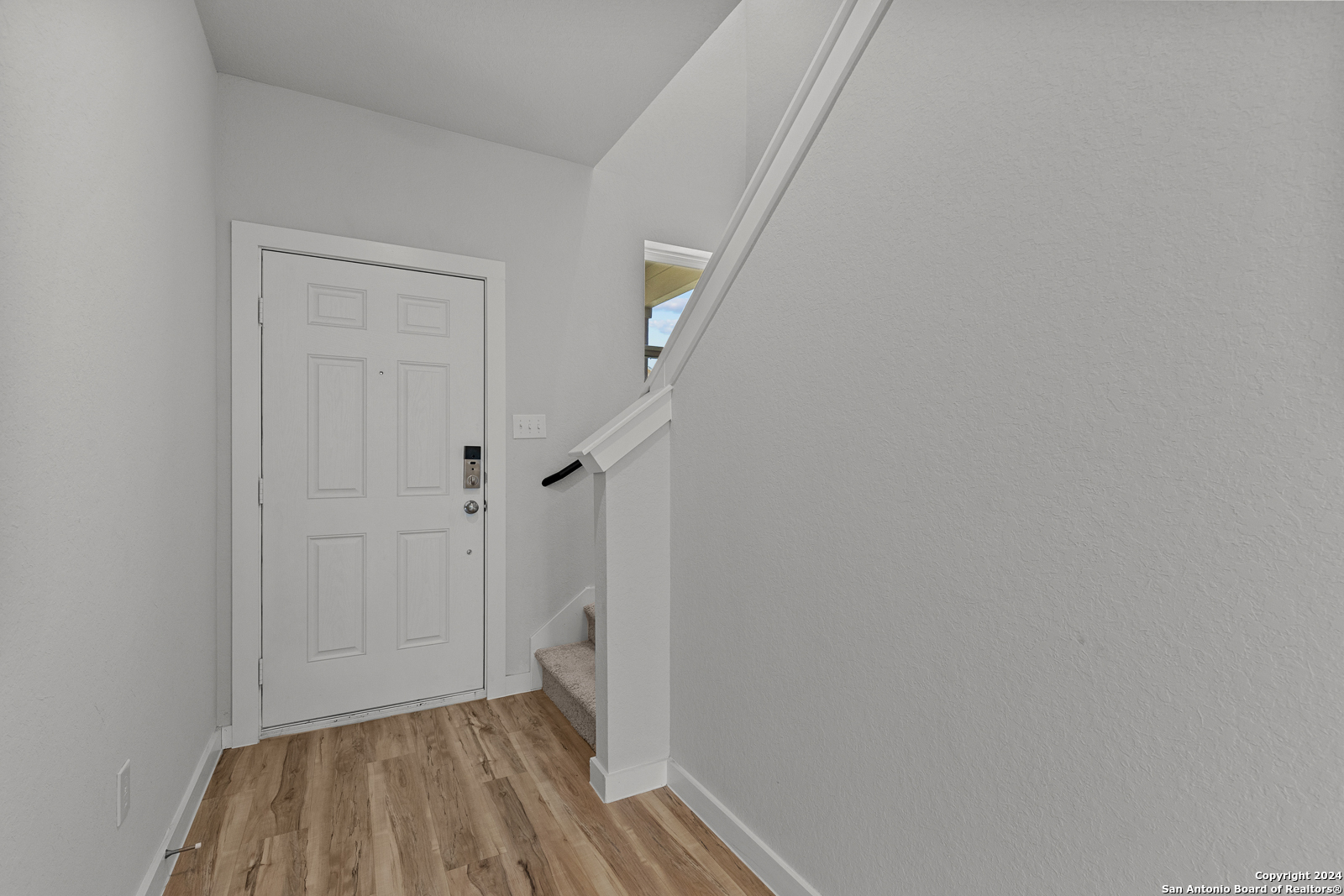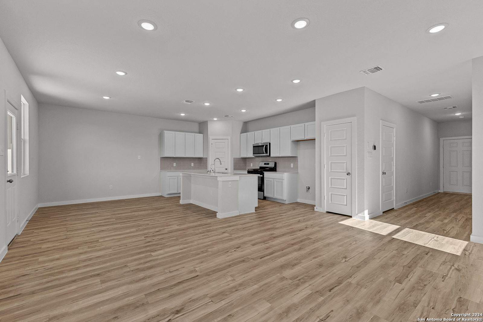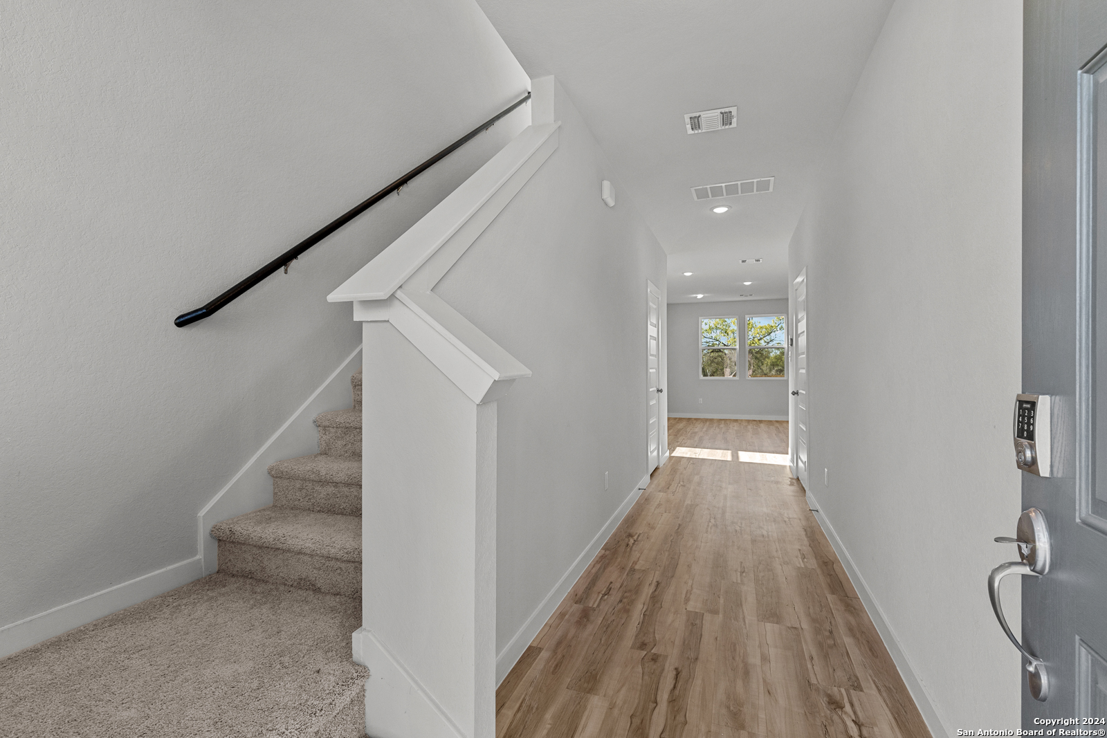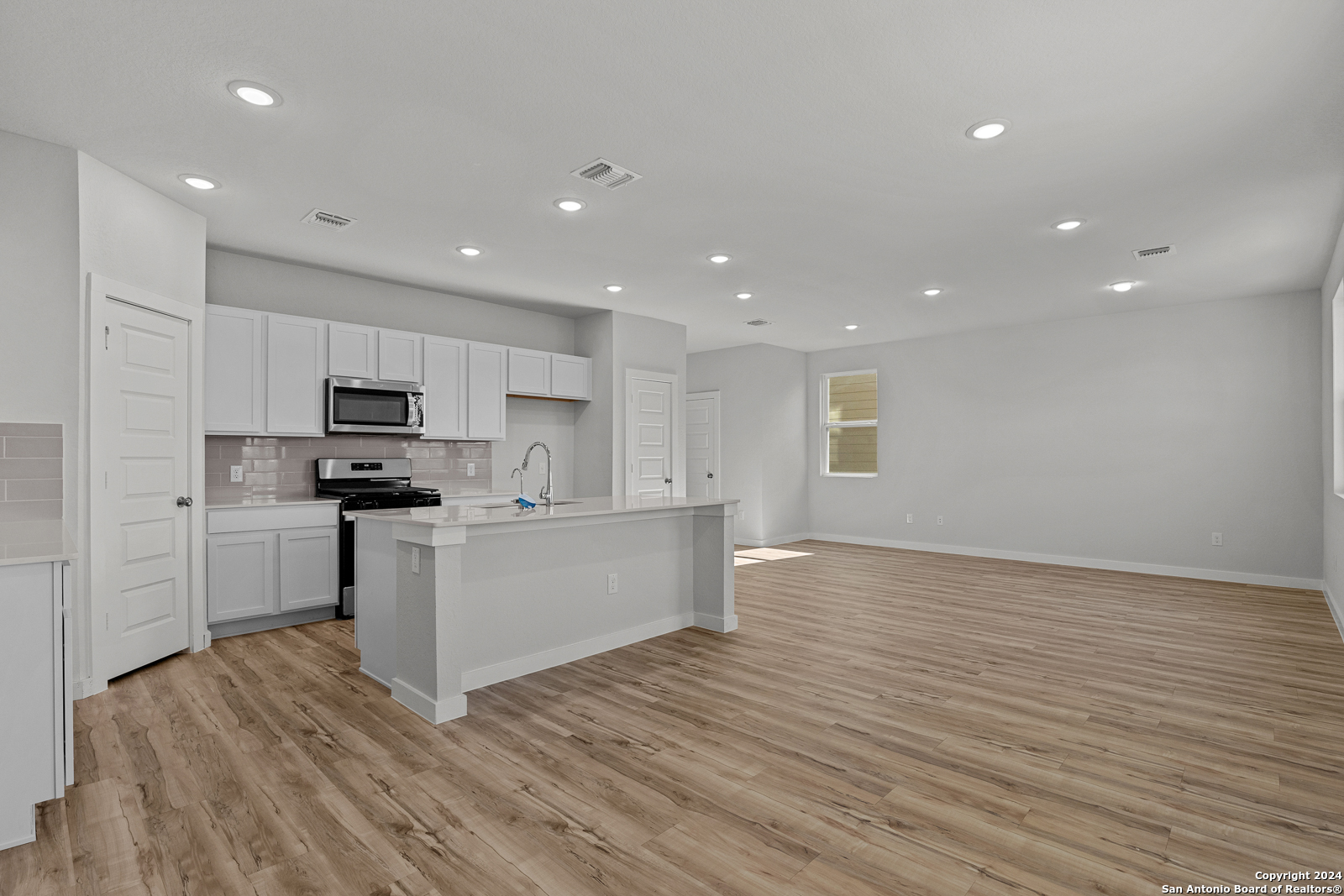 The Rudy at Hacienda offers two stories of well-designed living space. The first level features an open-concept great room seamlessly connected to the dining area and kitchen equipped with a corner walk-in pantry and a center island. Additionally, a convenient powder room can be found on the main level. Upstairs, a spacious primary suite's en-suite bathroom offers privacy and functionality with a dual-sink vanity and an expansive walk-in closet. Three secondary bedrooms, also located on the second floor, share a full bathroom. A full laundry room and 2-bay garage complete the space. Additional home highlights and upgrades: 36" white kitchen cabinets, quartz countertops, black fixtures and backsplash, Luxury wood-look vinyl plank flooring in common areas, Stainless-steel appliance package with gas range oven, Recessed lighting throughout home, Cultured marble countertops and modern, rectangular sinks in bathrooms, Separate garden tub, Tile surround in shower, Landscape package with full sprinkler system, 240V electric car charging port, Covered patios, Exceptional included features, such as our Century Home Connect smart home package and more!