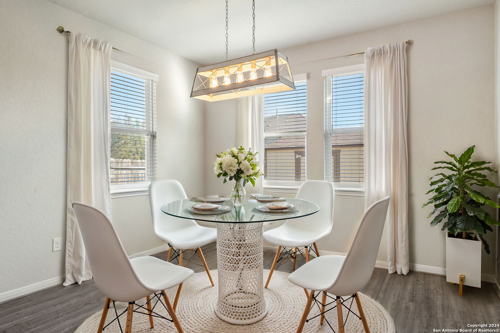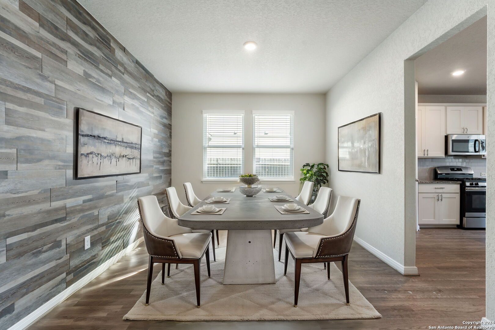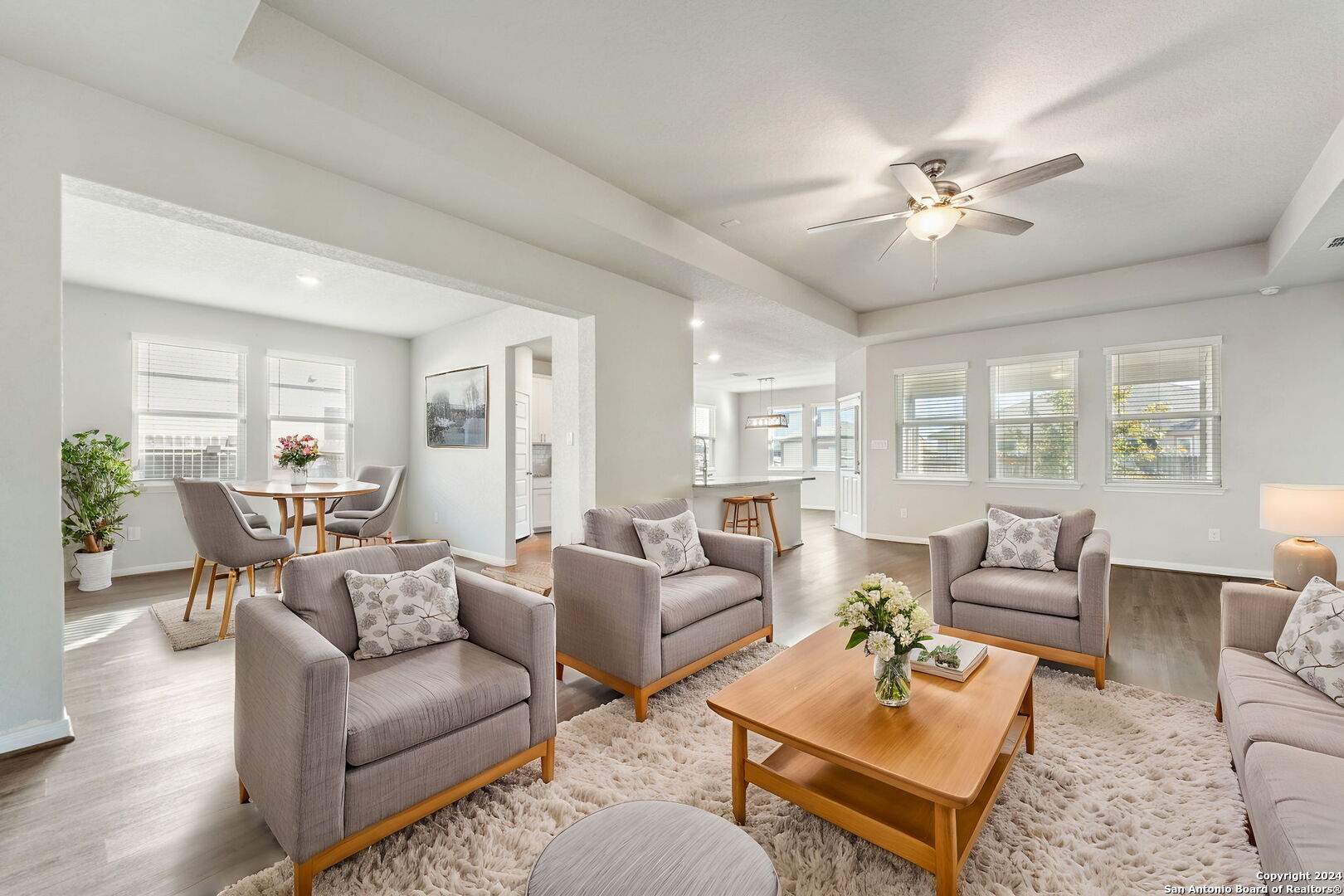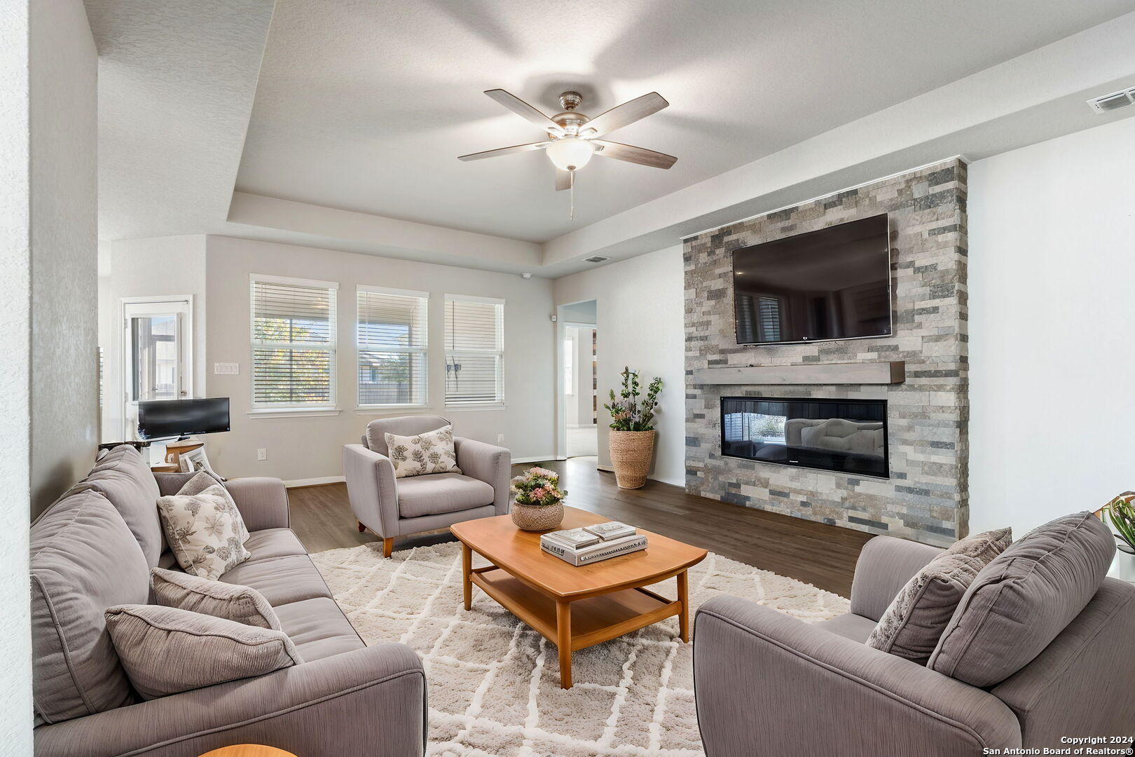 Welcome to 9950 Arches Valley, a beautifully designed single-story home in the desirable Rhine Valley community. This residence offers a seamless blend of modern comfort and thoughtful design. With four spacious bedrooms and two well-appointed bathrooms, the open-concept layout creates an inviting space for living and entertaining. The living area features an electric fireplace for added charm, while the covered patio extends your living space into the outdoors. The backyard includes a storage shed, providing extra space for organization and convenience. Enjoy the community's scenic trails and park, making this home a perfect balance of comfort and lifestyle. Conveniently located to Randolph AFB, restaurants and freeways.