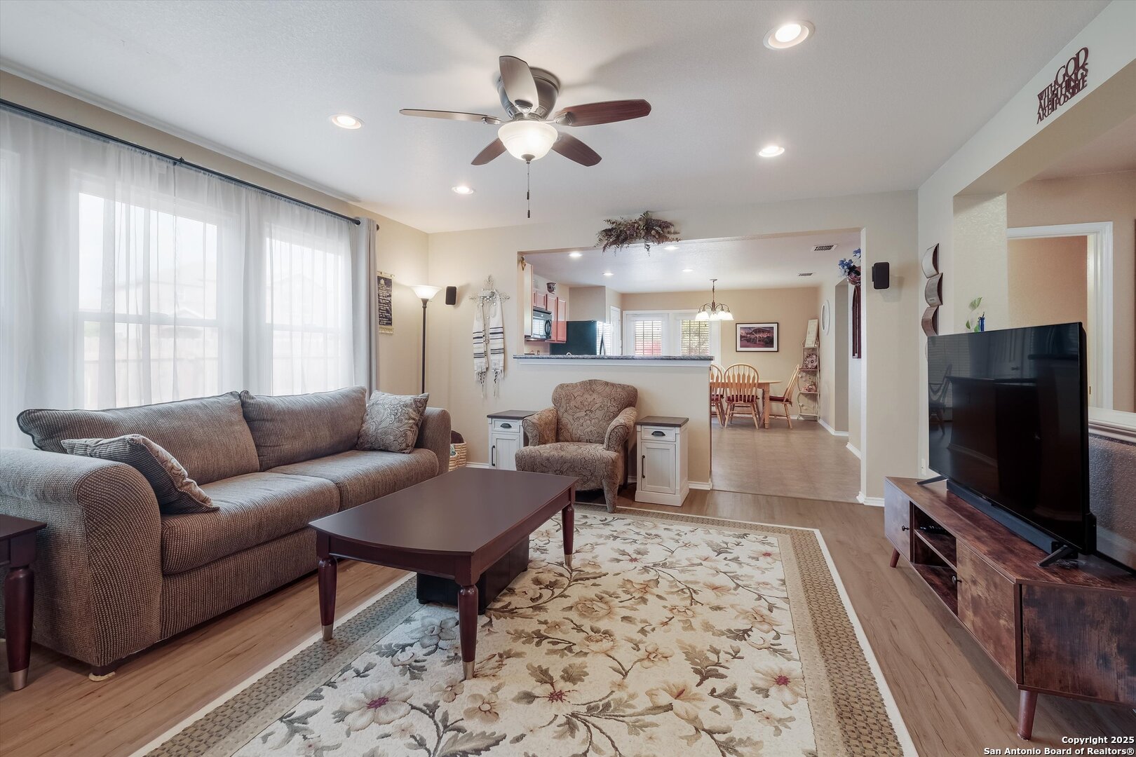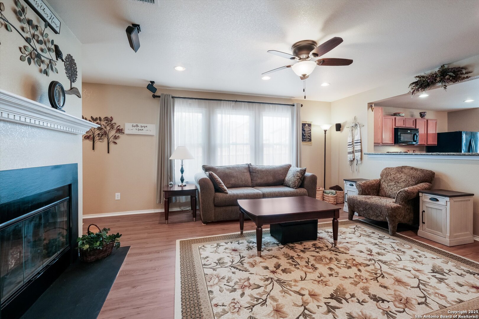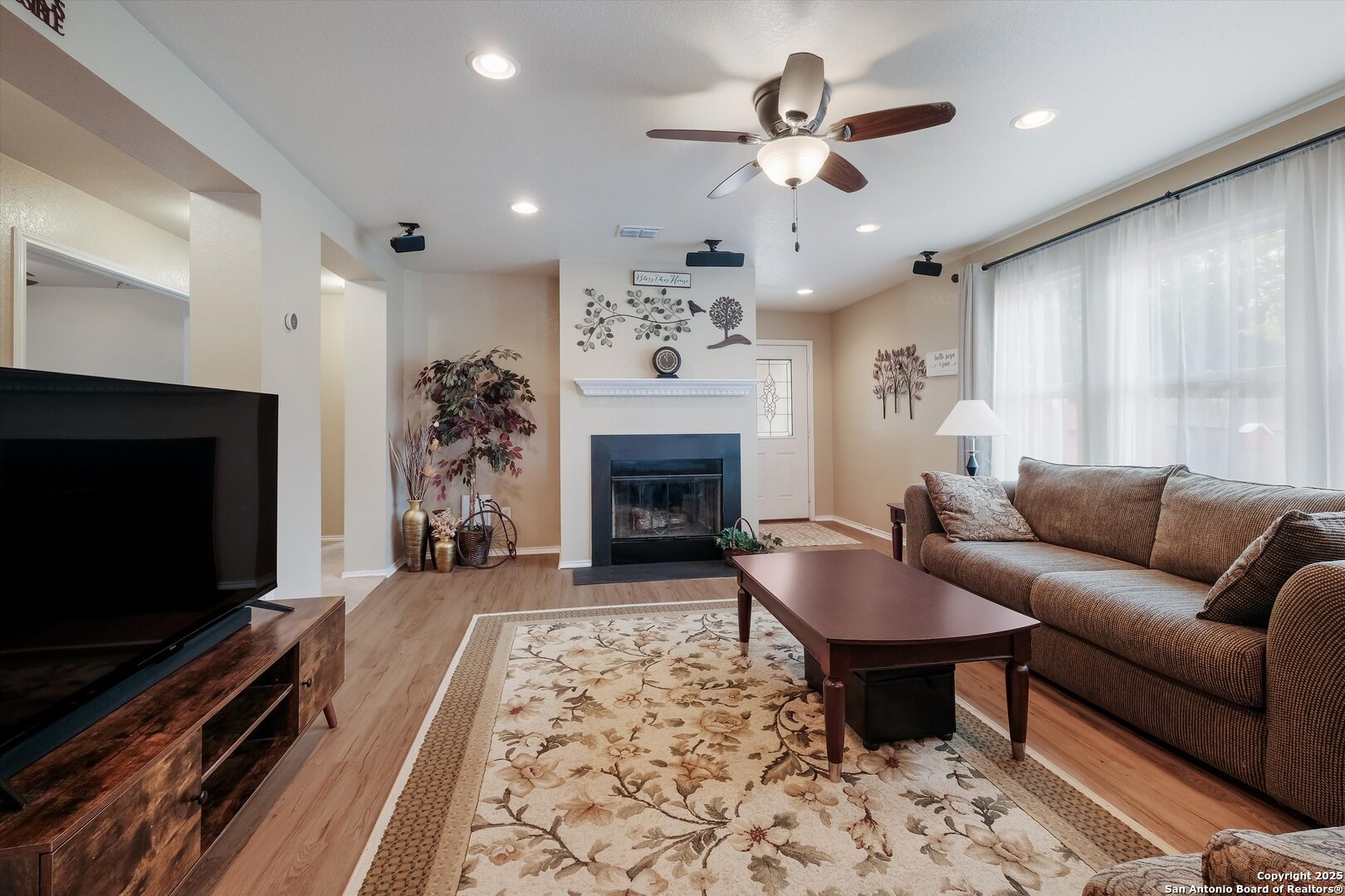 This cozy, move-in ready one-story home is perfectly situated on a spacious landscaped corner lot. It features 3 bedrooms, 2 full baths, and a versatile office or flex space, offering flexibility and comfort for any lifestyle. The home includes all appliances (Washer, Dryer and Refrigerator included!) and boasts new double-pane windows throughout, filling the bright open layout with natural light. The inviting living room greets you with a cozy fireplace, perfect for chilly evenings, and flows seamlessly into the large kitchen complete with a breakfast nook-ideal for casual dining. Enjoy your morning coffee relaxing in your quaint fenced backyard under the charming, covered patio. Your oversized one-car garage provides parking or extra storage space. New roof was recently replaced 2025. Welcome home.