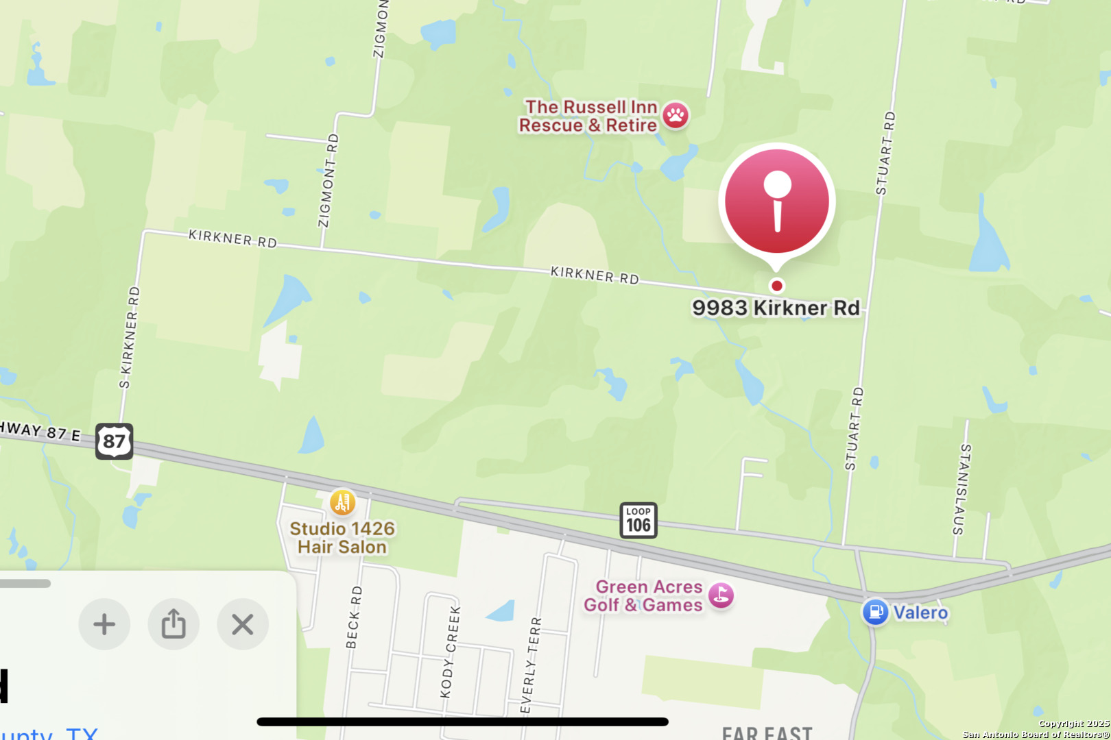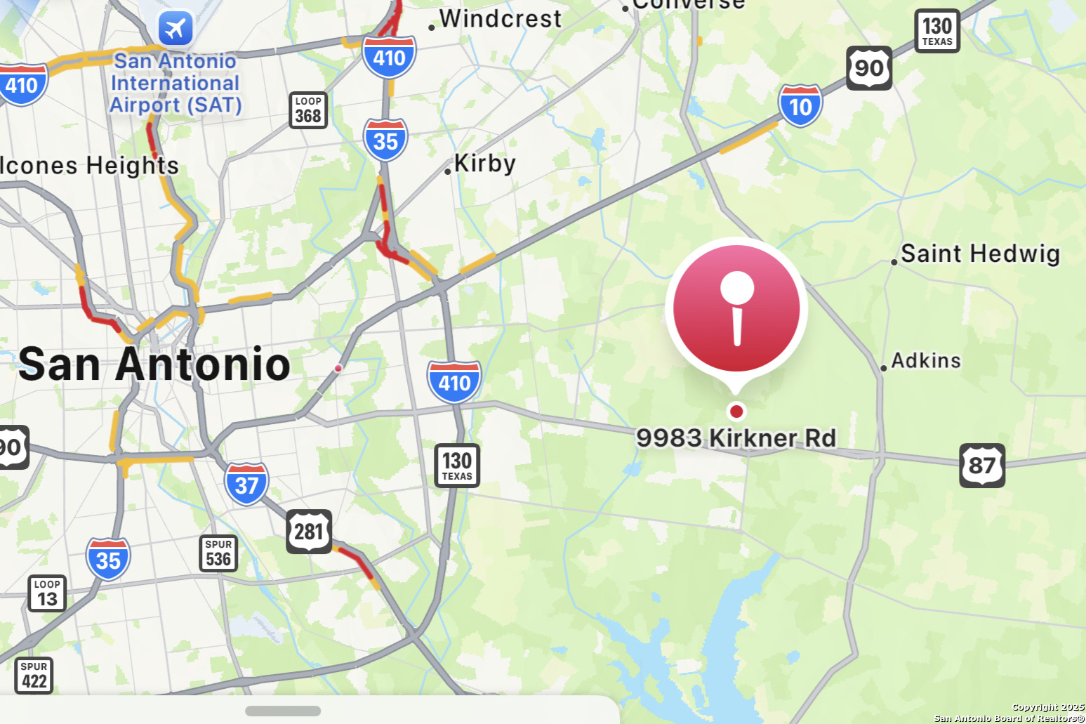 HUGE PROTENTIAL!!! Approx. 690' Ft KIRKNER RD, PAVED FRONTAGE ROAD! Zoning OCL. SELLER FINANCING 30% DOWN! OR USDA 100% FINANCING (USDA LOAN) NO HOA! 2.975 Acres. Property is mostly level, cleared, has 120v, 240v electricity, pole-meter on site, plus city water and aerobic septic system, and propane tank. Tons of paved road access, easily park trucks, RVs, boats, business equipment, materials, or have chickens, horses, cows. Roof replaced in 2020. Home 3 bedroom 1 bath plus bonus room (4th bedroom). Kitchen includes a gas stove/oven, 3 3-door stainless steel refrigerator also ceiling fans, metal exterior doors, a side-door-entry-ramp, all sitting on a cement slab foundation. Home needs a little love, add a 2nd bath. Minutes from animal hospital/clinic, Valero Gas-Convenience Store, Golf, entertainment, and nearby neighboring cities, San Antonio, Fort Sam, St Hedwig, Calaveras Lake, and more! Your Down Payment Is Your Credit or Finance 100% with a USDA Home Loan (Must Qualify). NOTE: (Home itself is not in a flood zone, but part of the property is.) FEMA flood zone X, A may not require flood insurance (1% annual chance of flooding per FEMA). MUST SEE WON"T LAST HURRY!
