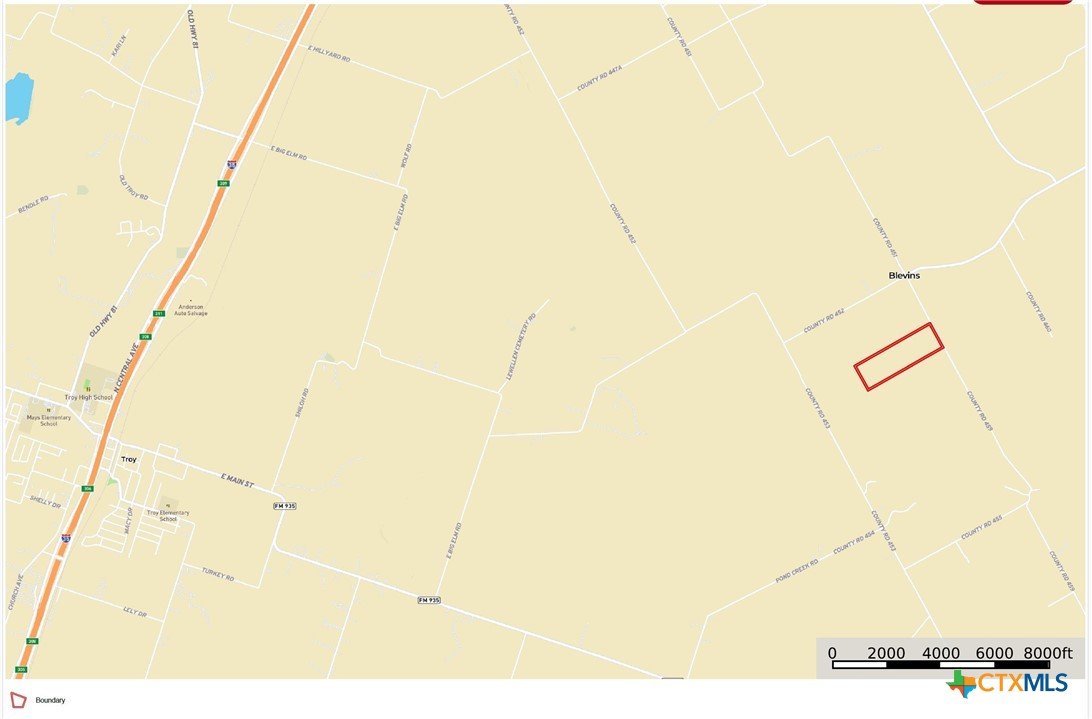 ±72.8 Acre Cultivated Farm property. Located on CR 459 just South of Blevins and CR 452 in Falls County. Easy Access back to IH-35 and State Hwy 7. There are no vertical improvements on the property. Completely Cultivated and in Row Crop Production. There is a tree line along the rear of the property. There are no creeks or ponds on the property. Very flat with less than ±10' of elevation changes from ±530' to 540' above sea level, with ±0%-1% slopes. Fertile Branyon clay soils with an average capability rating of 2. Little Elm Valley WSC provides potable water service in the area. Heart of Texas Coop provides electric services in the area. ±1,006’ linear feet of dirt road frontage along CR 459. Bruceville-Eddy ISD. Ag Exemption in place for low property taxes.
