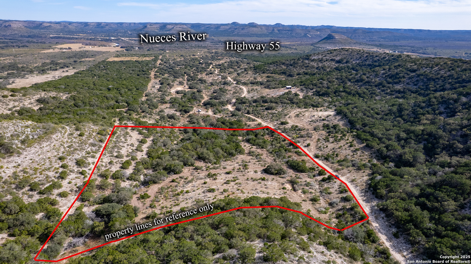 This 10 plus acres approx 25 miles West of Uvalde off HWY 55 is everything you need if you are looking for beautiful views of the hills; gorgeous oaks, mountain laurel, persimmons and cedar brush are abundant as well as native wildlife including whitetail, axis, hogs, turkey and quail. A lovely covered pavilion and access to the Nueces River are perfect for family fun in the hot sun!