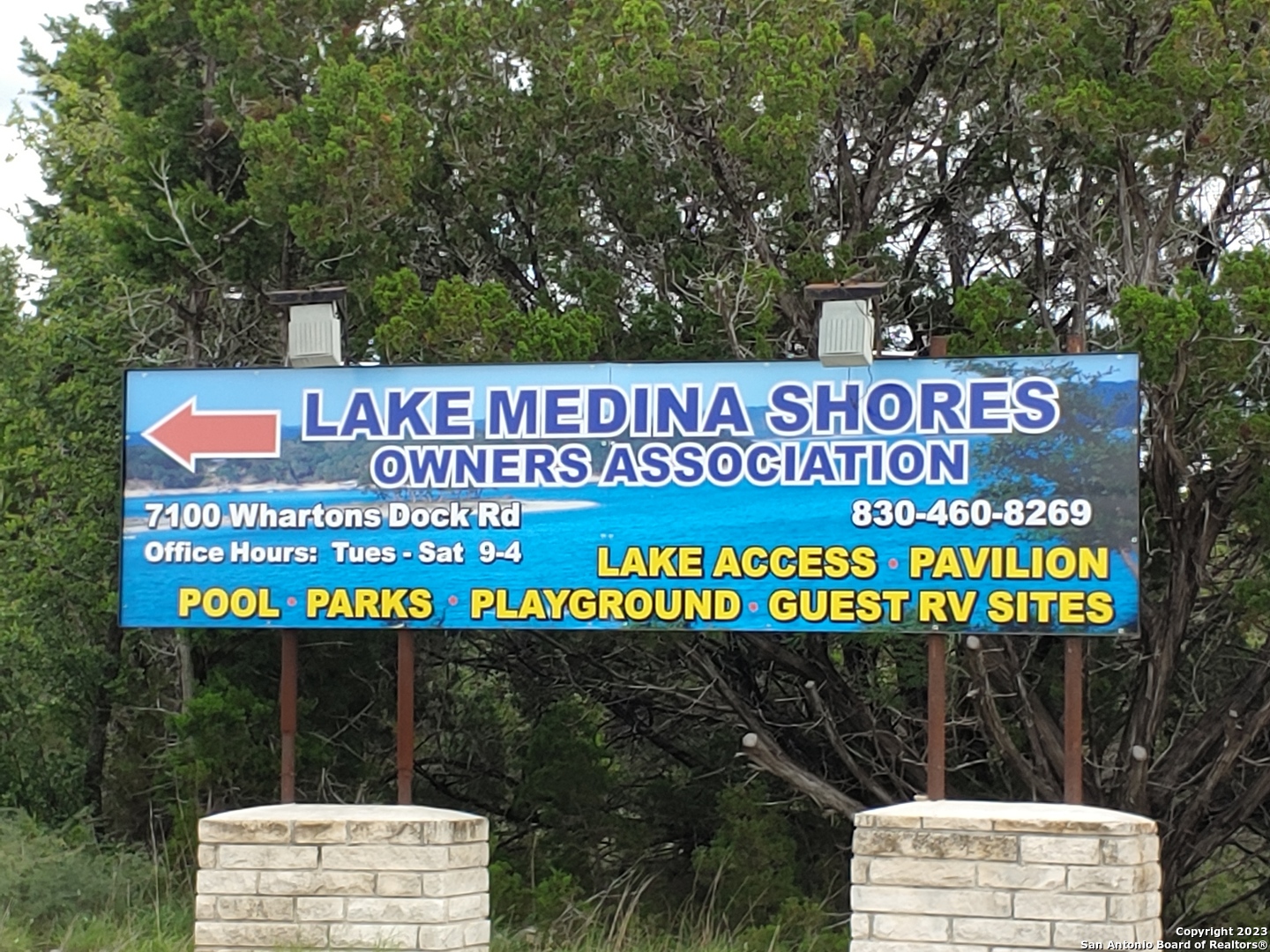 Nice level lot with great trees, access to a water system and no HOA!! This lot is located in the Lake Medina Shores subdivision but is not part of the Mandatory HOA, so the lot has no restrictions. You can camp on it , build on it or use it for a business. The lot is actually a lot and half in size making it 0.132 acres.
