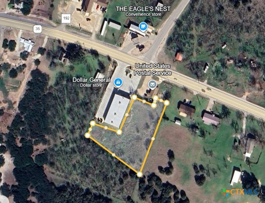 Open and flat lot in Jonesboro, ready for your commercial or residential use. This versatile property offers great potential — take advantage of the high visibility and traffic along Highway 36 for your business, or enjoy the convenience of being close to the school, store, and post office for residential living. Water: Coryell City Water has verified meter availability for $5,180. Buyer to confirm current meter availability. Electricity: Buyer to verify availability. Sewer: Septic system required. Access: Property access is provided through an easement that runs along the west side of the Dollar General parking lot, extending all the way to the back of the property.