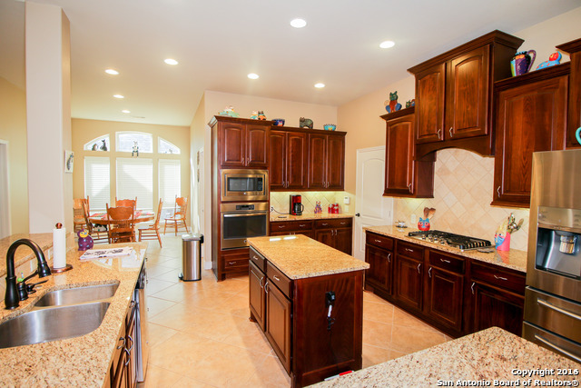 This grand one story home in Oak Run has barely been lived in. Delight in the extended entry with raised coffered 12-foot ceiling, office with French doors, and formal dining room. Additionally, the family room has a 12-foot ceiling, ceramic tile floors, and a stone fireplace. In the kitchen, eye-catching features include granite countertops, a beautiful tile backsplash, a GE five-burner gas cooktop, a double oven, 42-inch raised panel cabinets, an island, and a deep walk-in pantry. Finally, a guest suite comes complete with a private full bath, a media room includes a French door entry, and the master suite is secluded.