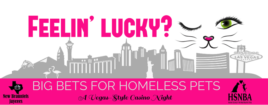 The New Braunfels Jaycees (a young professionals organization composed of aspiring leaders aged 18 to 40) and the Humane Society of the New Braunfels area are teaming up to host the inaugural Big Bets for Homeless Pets fundraiser. With a $40 entry fee, enjoy a fun casino night with games like slot machines, blackjack tables, Texas Hold’em, craps, money wheels, roulette, and chuck-a-luck. Even though this is a benefit, at the end of the night you can cash in your winnings for some great door prizes. The night benefits the Jaycees to help out in their philanthropic and volunteering efforts as well as raising funds to support the animal shelter in caring for the homeless and at-risk animals in the area. Complimentary beer and hors d’oeuvres are included in the ticket price, and you’ll receive $1,000 in casino chips at the door. Ticket purchasing and more information here.