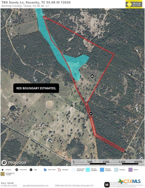Minerals Negotiable . Beautiful, secluded 55.95 acres in the desirable Rosanky area with numerous elevation changes throughout the entire property of up to 50 feet in elevation differential. Only .5 mi off of Sandy Ln. A picture perfect building site is located on the interactive map below. The property offers privacy, recreational activities complete with trails, abundant Texas wildlife, towering majestic trees and a pond. Located convenient to Austin Airport (35 Min) and 22 min to Bastrop. A tributary of Sandy creek meanders through the property. Aqua water across Sandy Ln and Bluebonnet electric availability is nearby. Low taxes with Ag validation held by cattle . Survey available. Small portition in 100 yr flood area. With dual purpose, residential and recreational use you can bring your dream of county living and wonderful memories to reality.1.5 Hrs from San Antonio and about 1.45 hrs from Katy Tx. This really is a special property!!